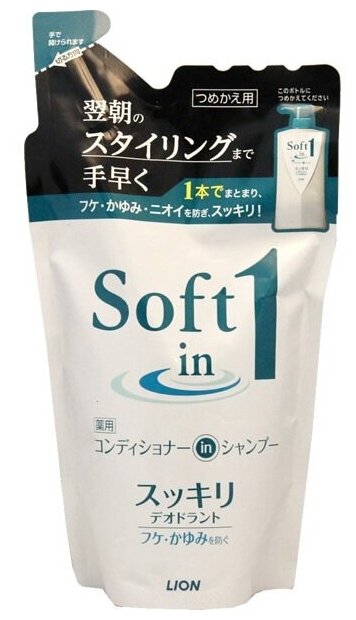 Шампунь-кондиционер Soft in 1 - против перхоти 2 в 1 очищает волосы от загрязнений, питает и делает их мягкими и шелковистыми. В состав шампуня входят шелковая эссенция и ценные биологически активные вещества. После использования шампуня, волосы легко расчесываются. Обильная пена, мягко обволакивает волосы и очищает их от загрязнений. После того, как вы смыли шампунь, начинает действовать кондиционер, питая волосы, благодаря минералам входящим в его состав. С легким ароматом цитрусовых.