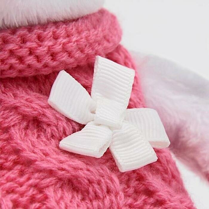 На кошечке тёпленький жилетик, будто связанный бабушкой из ниток цвета розовой герани. Спереди жилетик украшает бантик из белоснежной репсовой ленты. люшевую игрушку приятно держать в руках и гладить, благодаря искусственному меху с бархатистой текстурой и плотной набивки из гипоаллергенного наполнителя с гранулами. Игрушка выполнена очень аккуратно, все швы без следов клея. Одежда пошита безупречно. Игры с мягкими игрушками-антидепрессантами, способствуют прекрасному настроению, развитию образного воображения, координации движений, моторики, тактильной чувствительности, стимулируют игровую деятельность.