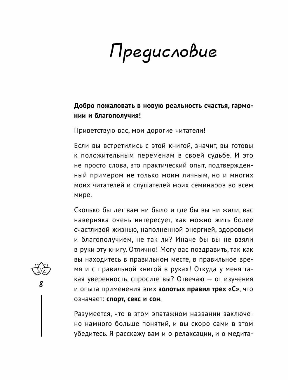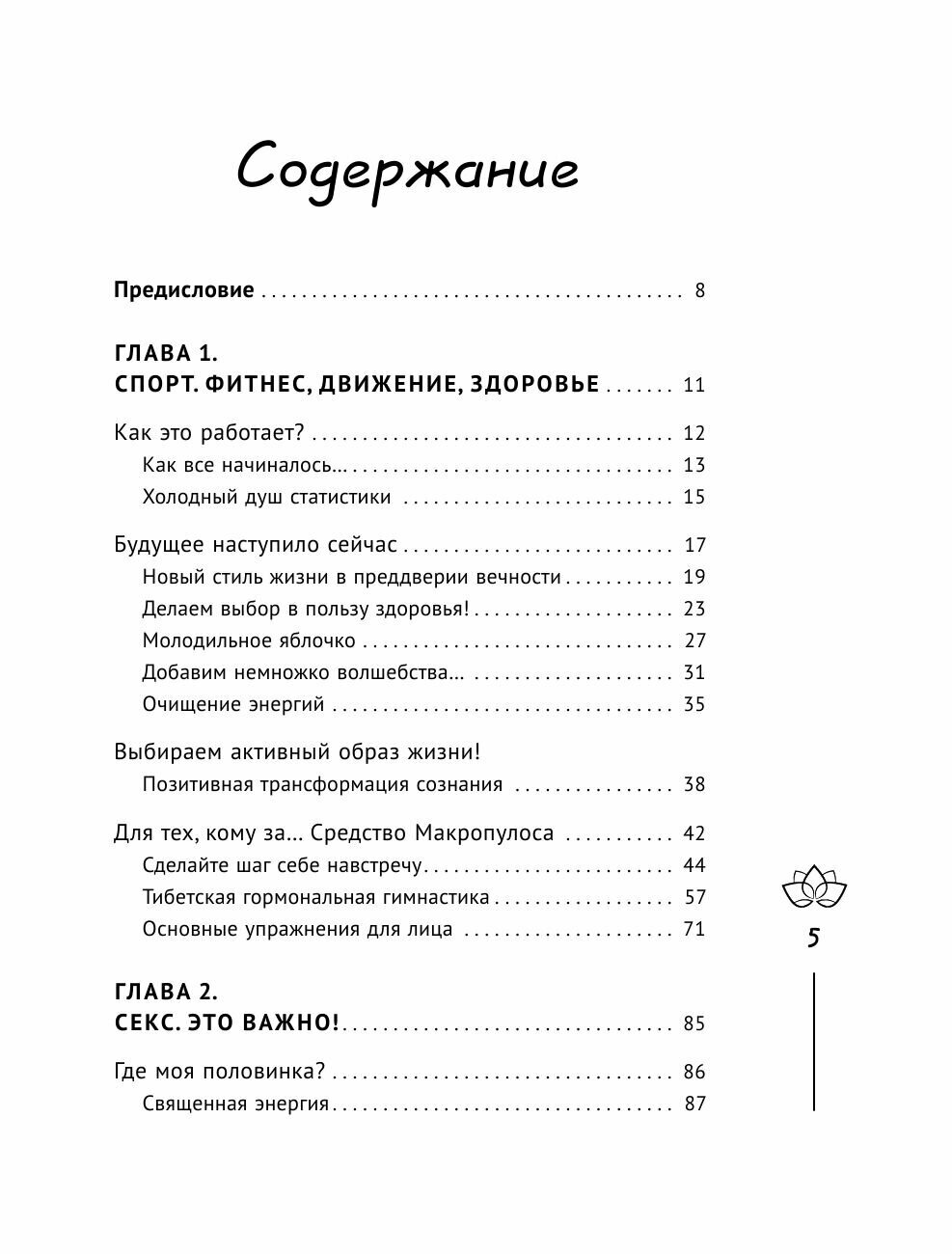 В этой книге - эксклюзивный курс омоложения. В него входят тибетская гормональная гимнастика, энергетическое очищение тела, практики для пробуждения женской силы и сексуальности, а также секрет восстанавливающего сна.