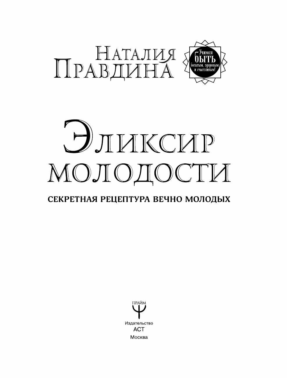 Эликсир молодости. Секретная рецептура Вечно Молодых (Правдина Наталья Борисовна); АСТ, 2019