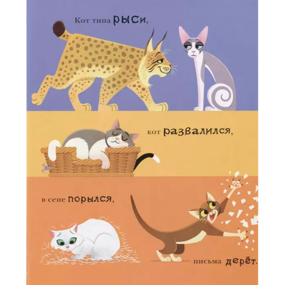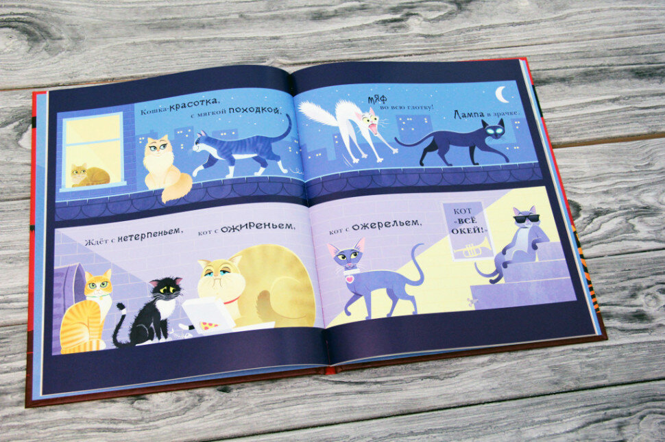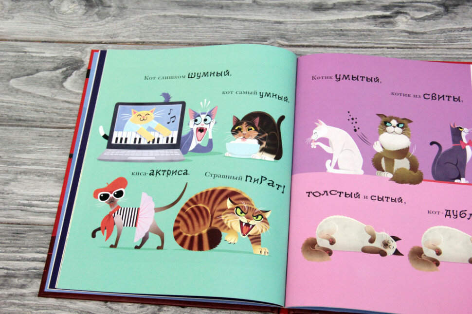 Сначала мы читали книгу «Сто собак», она нам очень понравилась, выучили многие породы, теперь на улице все внимание на собак. Вспоминаем породу и что эта собачка делала в книжке. Теперь купили «Сто кошек», она понравилась еще больше, все-таки моя дочь вырастет кошатницей. Всех нашла в книге – нашу кошку, соседскую и кота с дачи. Стихи в книге запоминаются очень легко, они как песенка. И классные яркие иллюстрации – у каждого котика свой характер, прям как в жизни. Отличная книжка!