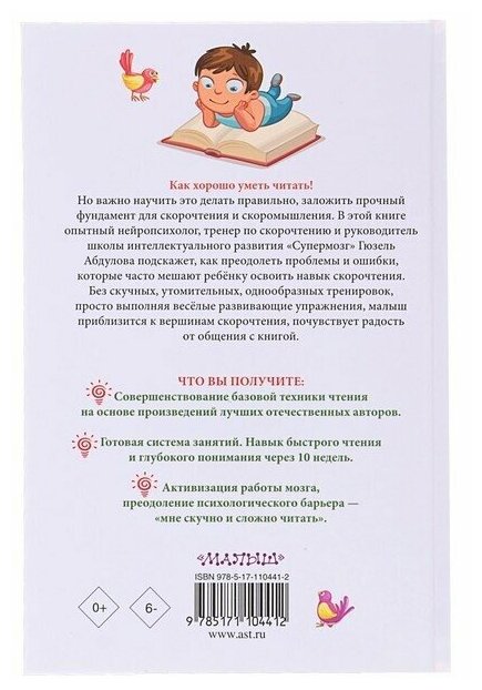 Как хорошо уметь читать! Но важно научить это делать правильно, заложить прочный фундамент для скорочтения и скоромышления. В этой книге опытный нейропсихолог, тренер по скорочтению и руководитель школы интеллектуального развития "Супермозг" Гюзель Абдулова подскажет, как преодолеть проблемы и ошибки, которые часто мешают ребёнку освоить навык скорочтения. Без скучных, утомительных, однообразных тренировок, просто выполняя весёлые развивающие упражнения, малыш приблизится к вершинам скорочтения, почувствует радость от общения с книгой.