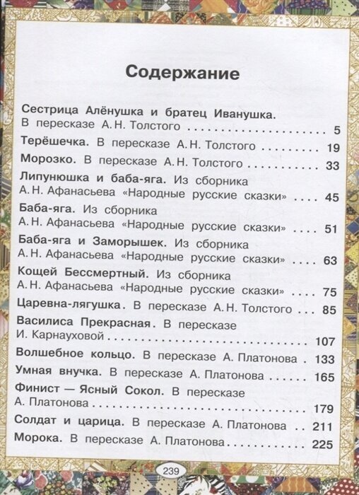 Отличный сборник русских сказок порадует любого маленького читателя, а взрослых заставит вспомнить своё детство и вновь погрузиться в волшебный сказочный мир. Оформление книги прекрасное. Хорошее и качественное издание с плотными страницами наполненное множеством красивейших иллюстраций. Ребёнку книга очень понравилась. Она непременно займёт своё почётное место в домашней библиотеке.