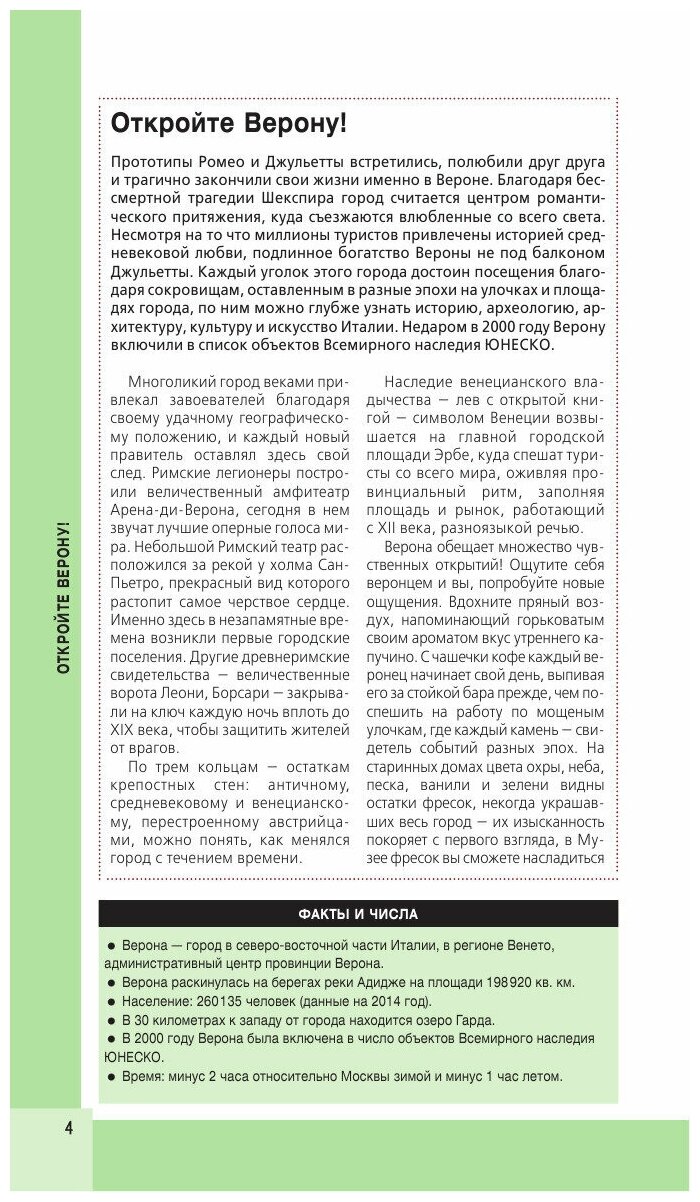 Перед вами экспресс-гид по Вероне. В нем содержится краткая информация о городе, советы, как лучше провести первые 3 дня или неделю, и 25 главных достопримечательностей. Также в книге вы найдете описания самых интересных мест каждого района города. Гуляйте, знакомьтесь, восхищайтесь солнечной Вероной и получайте нужную информацию в режиме нон-стоп!