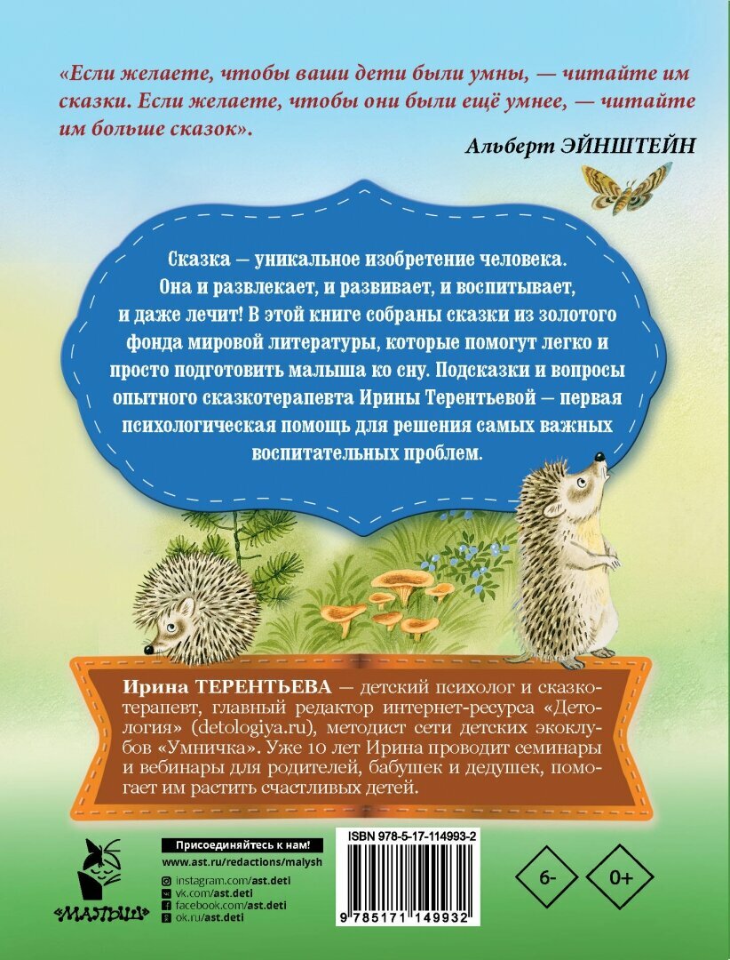 Сказка - уникальное изобретение человека. Она и развлекает, и развивает, и воспитывает, и даже лечит! В этой книге собраны сказки из золотого фонда мировой литературы, которые помогут легко и просто подготовить малыша ко сну. Подсказки и вопросы опытного сказкотерапевта Ирины Терентьевой - первая психологическая помощь для решения самых важных воспитательных проблем.