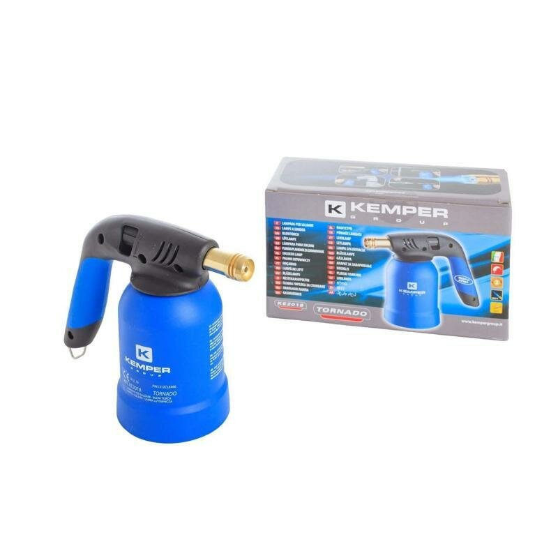 Газовая горелка Кемпер предназначена для различных монтажных и строительных работ: пайка медных, латунных, бронзовых труб, нагрев лакокрасочных и напольных покрытий, для их удаления, для облегчения изгибания различных металлических предметов, труб, кромок деталей, проволоки, пластин жести, разборка ржавых соединений стальных и чугунных труб и т. д.Паяльная лампа Кемпер 2018 с традиционным воспламенением. Имеет корпус из термостойкого пластика под прокалываемые газовые баллоны, удобную прорезиненную ручку, регулятор пламени и запатентованную систему безопасности, которая предохраняет от несвоевременного отсоединения газового баллона.Рассчитана на температуру до 1900 °С.Работает от одного баллона до 3,5 часов.