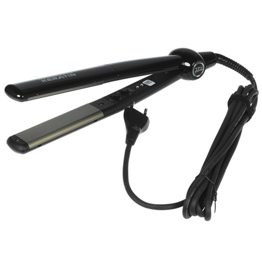 Выпрямитель с титановым покрытием пластин и увеличенной шириной. Плавающие пластины обеспечивают плотный контакт пряди по всей поверхности пластины и помогают избежать пересушивания и повреждения волос, что очень важно при процедуре кератинового выпрямления, когда идет работа с тонкими прядями.