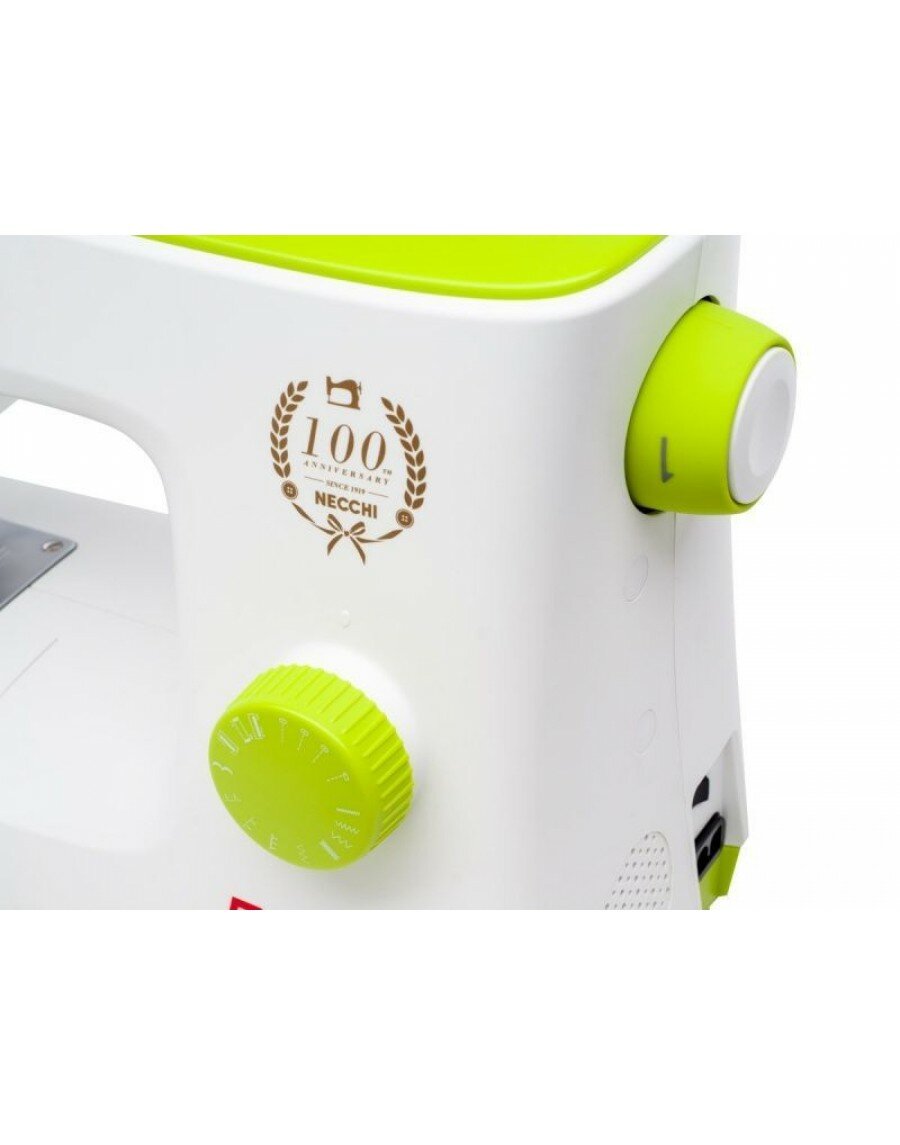 | Прочие особенности и свойства | Привлекательный дизайн (прототипом стала легендарная машина Necchi - Мирелла (1956), ставшая эталоном функциональности и эстетики для своего времени. Ее экземпляр и по сей день занимает место в музее современного искусства в Нью-Йорке) Компактный эргономичный корпус из высокопрочного пластика Вертикальный качающийся челнок (классический) Тихий ход и четкая фиксация Подходит для работы со средними и легкими тканями (вискоза, хлопок, лен, ситец, сатин, бязь) Нож для ручной обрезки нити Двухшаговый рычаг для подъема лапки Максимальная длина стежка 4 мм Максимальная ширина строчки 5 мм Стопор намотки катушки Функция "свободный рукав" Реверс Яркое освещение рабочей зоны |