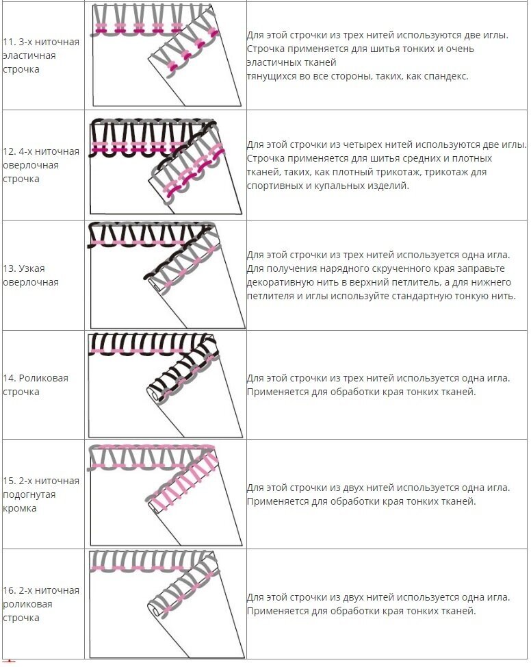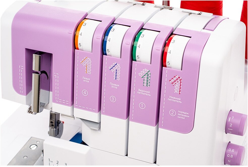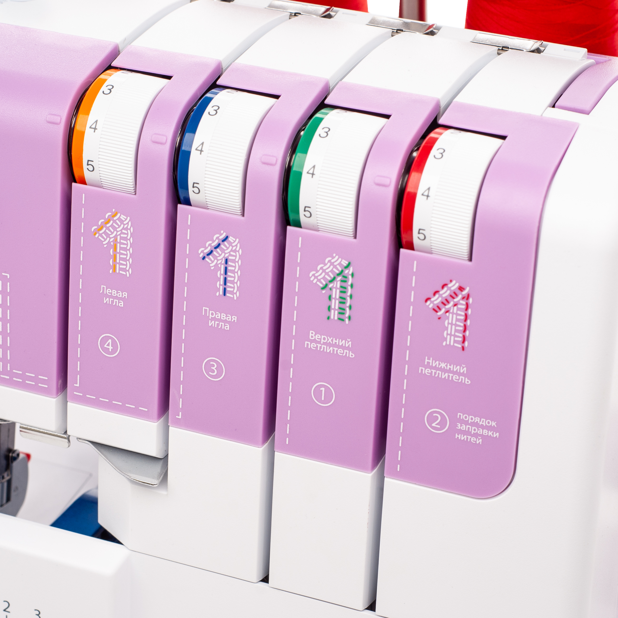 | Прочие особенности и свойства | Дифференциальная подача,Автоматическая заправка петлителя,Отключение ножа,Регулировка прижима ткани,Регулировка ширины обреза ткани,Число нитей 2, 3, 4,Виды швов ролевой шов, flatlock,Длина стежка 1 - 5 мм,Ширина стежка 3 - 7 мм,Максимальная высота подъема лапки 5 мм,Максимальная скорость шитья 1200 стежков/мин,Съемная рукавная платформа,Цветная маркировка,Лоток для обрезков,Отсек для аксессуаров,Чехол мягкий |