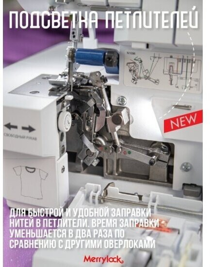 Merrylock - это простой и удобный современный оверлок, новинка 2019 года, рассчитанный для домашнего использования и гарантирующий отличное качество шитья, равно как легких, так и плотных материалов, от шелка до джинсы. Эта машина предназначена для выполнения различных видов строчки в соответствии с комбинированием различных положений игл, способов заправки нитей, установленного значения натяжения и использования конвертера для верхнего петлителя.Особенности модели Merrylock :Современный эффектный дизайн.Помощник натяжения нити. Возможность оперативно и безошибочно корректировать натяжение, в соответствии с таблицей выполняемых строчек.Базовый комплект наиболее важных краеобметочных операций.Свободный рукав. Вы сможете просто шить манжеты и рукава круглой формы.Регулятор давления прижимной лапки.Ящик для обрезков.Регулятор дифференциальной подачи ткани.Регулятор ширины обрезки.Двойная колоритная LED подсветка для освещения области шитья и области петлителя.Удобная ручка для переноски.