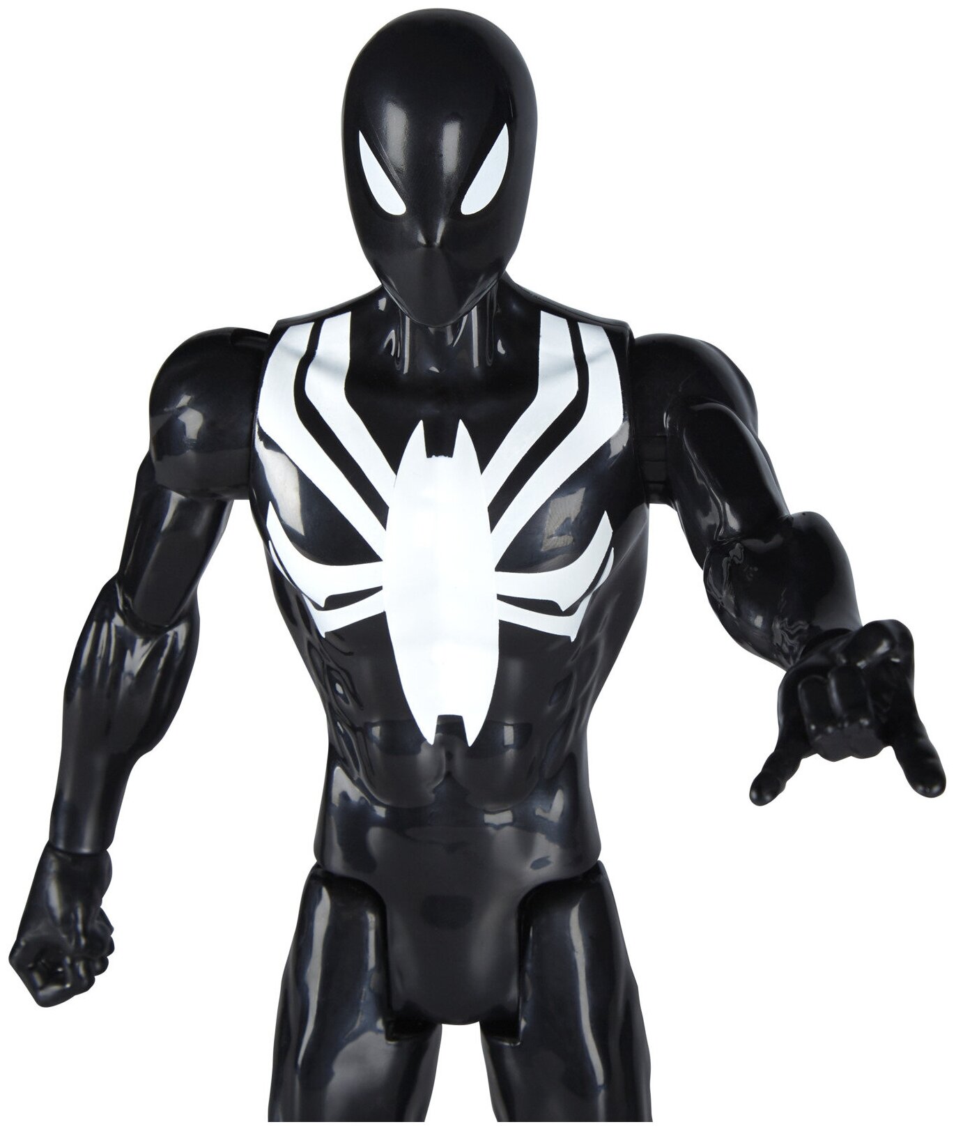 Фигурка Человека-паука в классическом черном костюме с белым пауком на груди. На голове черная маска с белыми прорезями для глаз. Игрушка с отличной детализацией, подвижными руками и ногами, есть несколько точек артикуляции. Фигурка имеет порт для пусковой установки Titan Hero Power FX (приобретается отдельно), с помощью которой можно активировать характерные для персонажа голосовые фразы и запускать орудия. Высота фигурки 30 см.