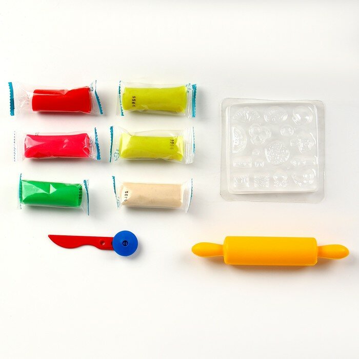 | Состав набора | 2 ложки, 2 блюдца, скалка, стек-ножик, 8 пакетиков с тесто-пластилином |