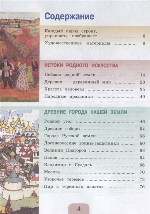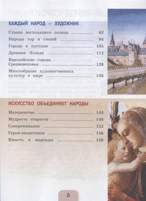 Дети научатся видеть своеобразие художественных культур русского народа и других народов мира (Древней Греции, средневековой Западной Европы, Японии и др.), а также находить общие гуманистические основы разных культур. По каждой теме дается система творческих заданий и вопросов, которые помогут постичь духовное содержание искусства, его образный язык, возможности различных художественных материалов и техник.