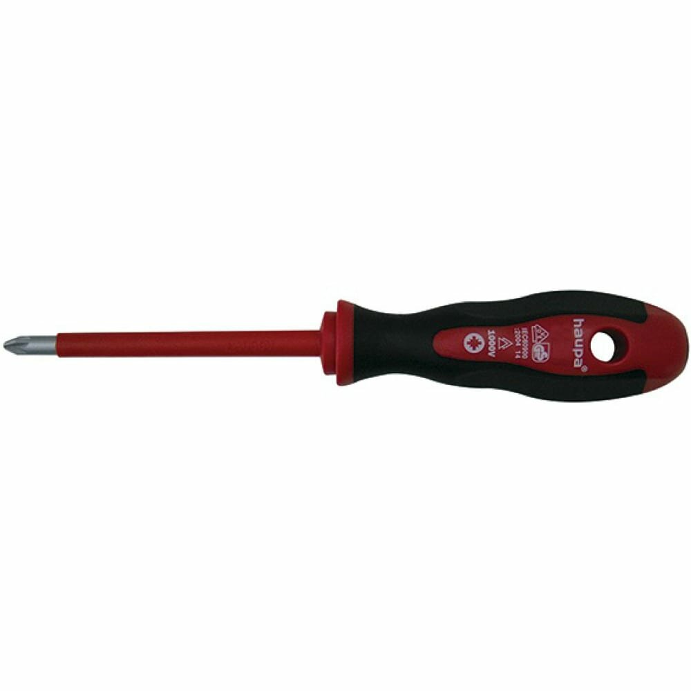 Диэлектрическая отвёртка для выполнения электромонтажных работ под напряжением до 1000 В, двухкомпонентная рукоятка из полипропилена/термоэластопласта, стержень из молибден-ванадиевой стали, длина стержня 150 мм. Каждая отвёртка проходит индивидуальную проверку на прочность изоляции, соответствует нормам IEC 60900 Тип профиля нанесён методом литья на торце рукоятки, не стирается и обеспечивает удобство выбора во время использования Равномерная подгонка рукояток отверток под руку обеспечивает еще лучшую передачу усилия. Зона рукоятки с мягкой пластмассой была увеличена Специальная форма обеспечивает защиту от соскальзывания руки