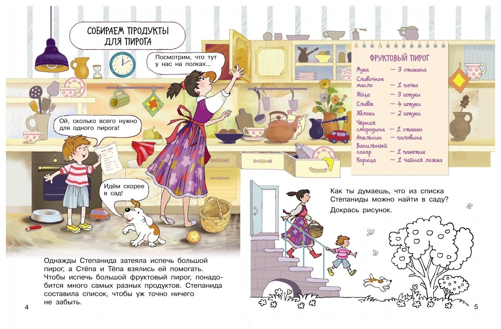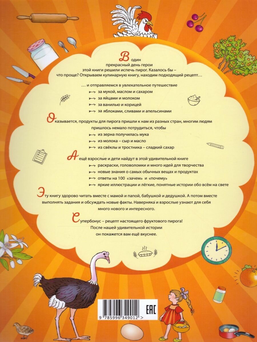 Книга оказалась очень занимательная и интересная! Даже моему 9 летнему сыну было интересно почитать, узнал много нового, например из чего делают шоколад и сахар. Помимо интересных фактов об ингредиентах пирога, есть задания на внимательность, есть страницы для раскрашивания. Хорошее качество печати. Книга понравилась, рекомендую!