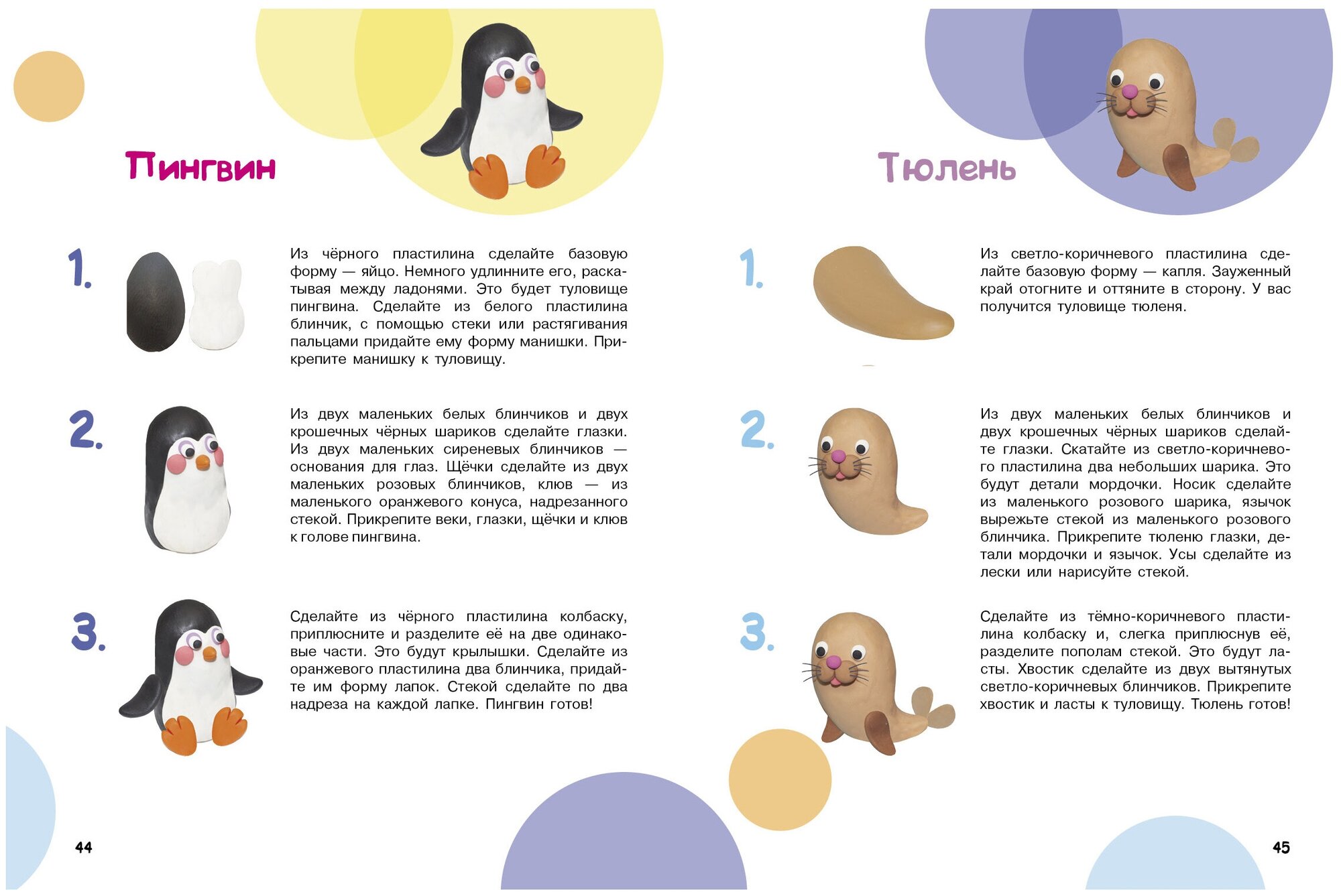 Мой ребенок ни когда не проявлял интерес к лепке, разве что играл с папой в перестрелку пластилиновыми шариками. Заказала книгу для себя, чтобы по ней лепить примитивы из полимерной глины. Не прошло и несколько дней, как на столе увидела косенького пингвина и зелёного зайца. Позже уличила ребёнка за лепкой. Даже не знаю, куда мне девать кучу свободного времени, ведь теперь мне не нужно отскребать от пола пластилиновые шарики.