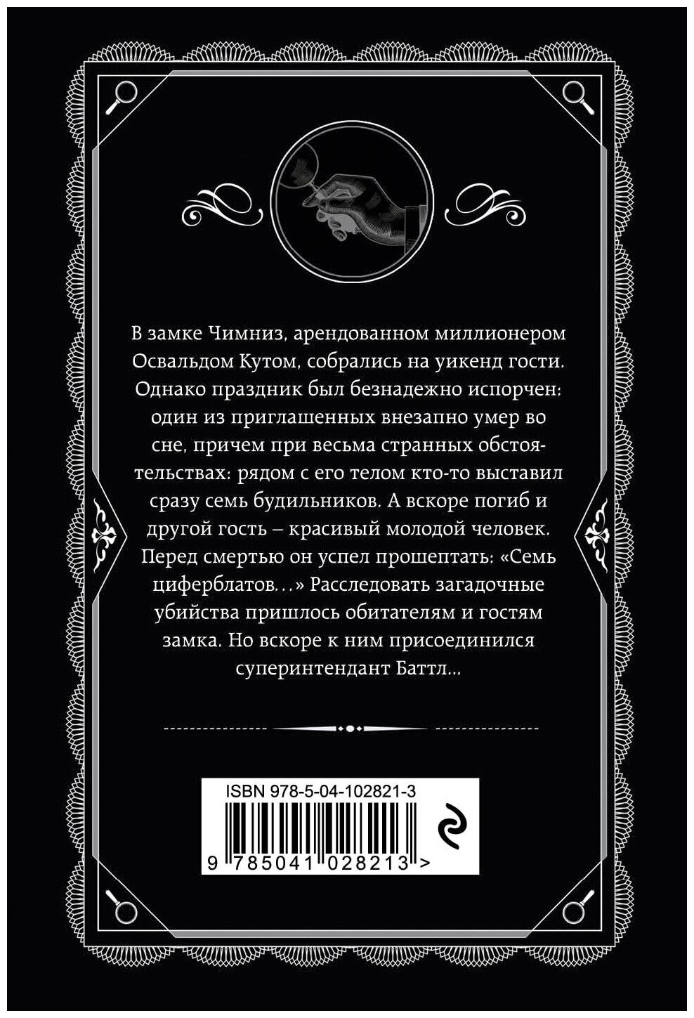 В замке Чимниз, арендованном миллионером Освальдом Кутом, собрались на уикенд гости. Однако праздник был безнадежно испорчен: один из приглашенных внезапно умер во сне, причем при весьма странных обстоятельствах: рядом с его телом кто-то выставил сразу семь будильников. А вскоре погиб и другой гость - красивый молодой человек. Перед смертью он успел прошептать: "Семь Циферблатов…". Расследовать загадочные убийства пришлось обитателям и гостям замка. Но вскоре к ним присоединился суперинтендант Баттл.