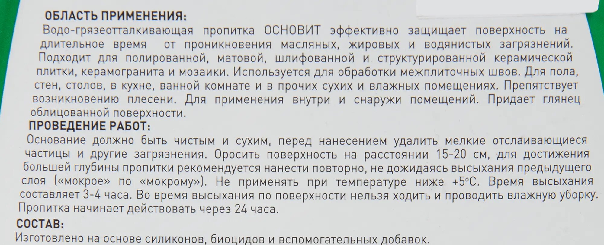 | Состав | на основе силиконов, биоцидов и вспомогательных добавок |