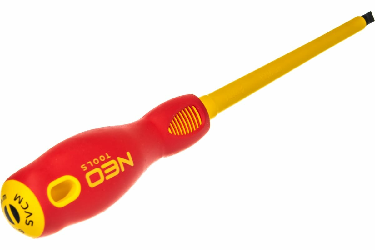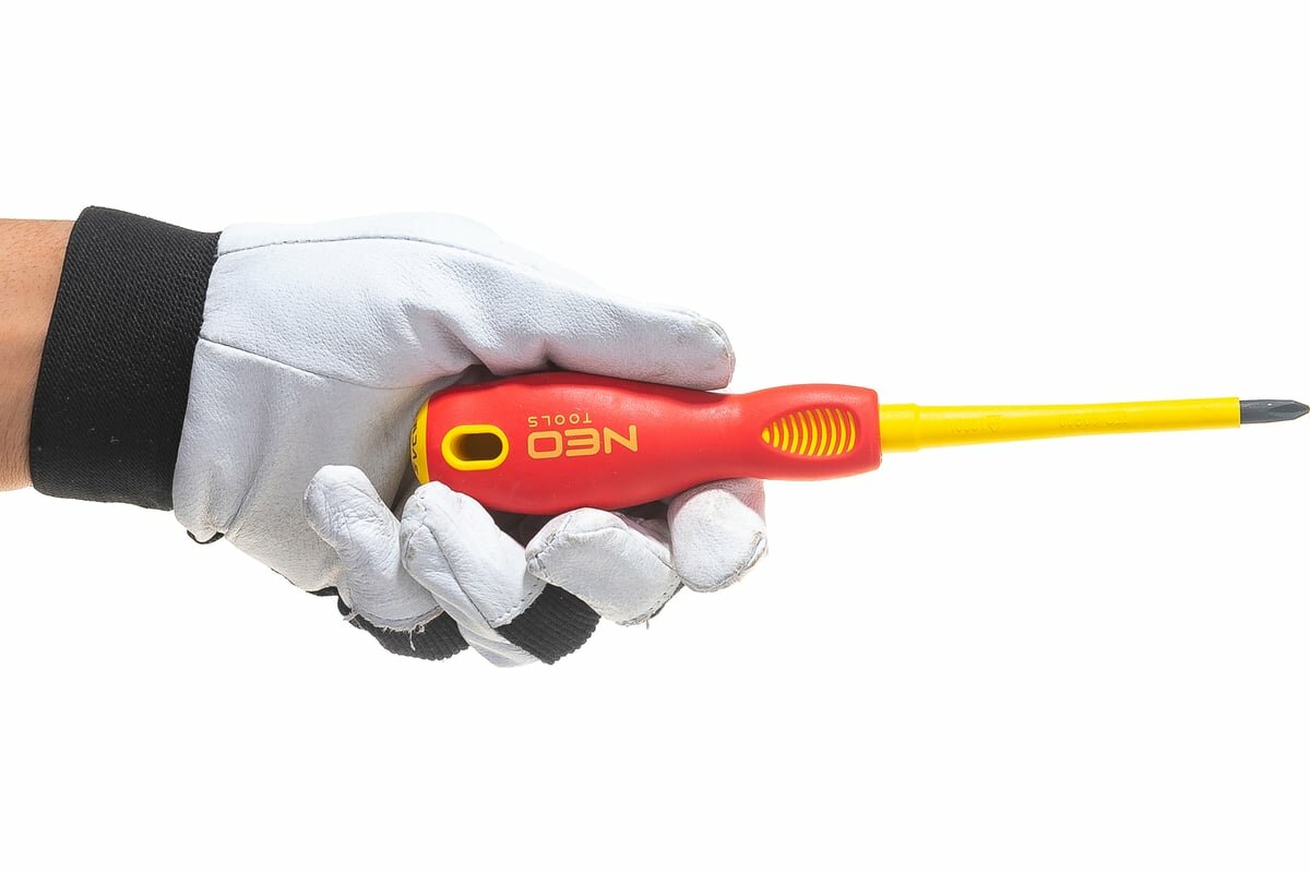 Набор отверток 1000 В NEO из 5 отверток: шлицевых и крестовых. Стержень изготовлен из чрезвычайно прочной хромомолибденовой стали. Рабочая часть подвергнута термообработке, благодаря чему получена требуемая твердость и стойкость к изгибу 56 HRC. Трехгранная форма рукоятки с профилированной опорой для большого пальца уменьшает нагрузку на ладонь во время работы и облегчает быстрое вращение отвертки. Двухкомпонентная рукоятка предотвращает скольжение в ладони. Качество инструмента подтверждено сертификатом TUV и 25-летней гарантией производителя. Бренд NEO оправдывает ожидания профессионалов.