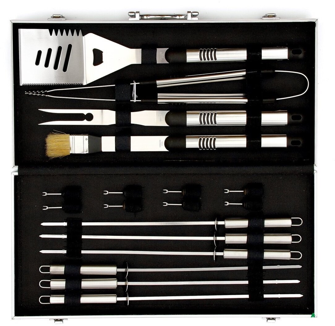 Набор для гриля из 18 предметов обязательно пригодится вам во время отдыха на природе с семьей или друзьями. С помощью приспособлений, входящих в комплект, вы сможете приготовить замечательные блюда на гриле или мангале на свежем воздухе.