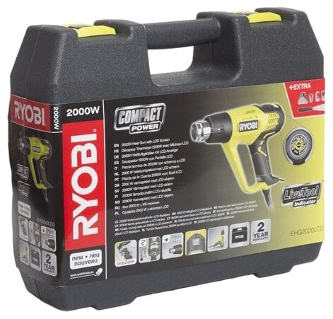 Ryobi EHG 2020 LCDТермопистолет Ryobi EHG 2020 LCD предназначен для прогрева замерзших труб, спаивания пластмасс, удаления красочных покрытий, разделения клеевых соединений. Корпус из нескользящего пластика гарантирует комфортную работу. Двигатель мощностью 2000 Вт обеспечивает высокую производительность. Инструмент поставляется в кейсе, что решает вопрос транспортировки и хранения инструмента.
