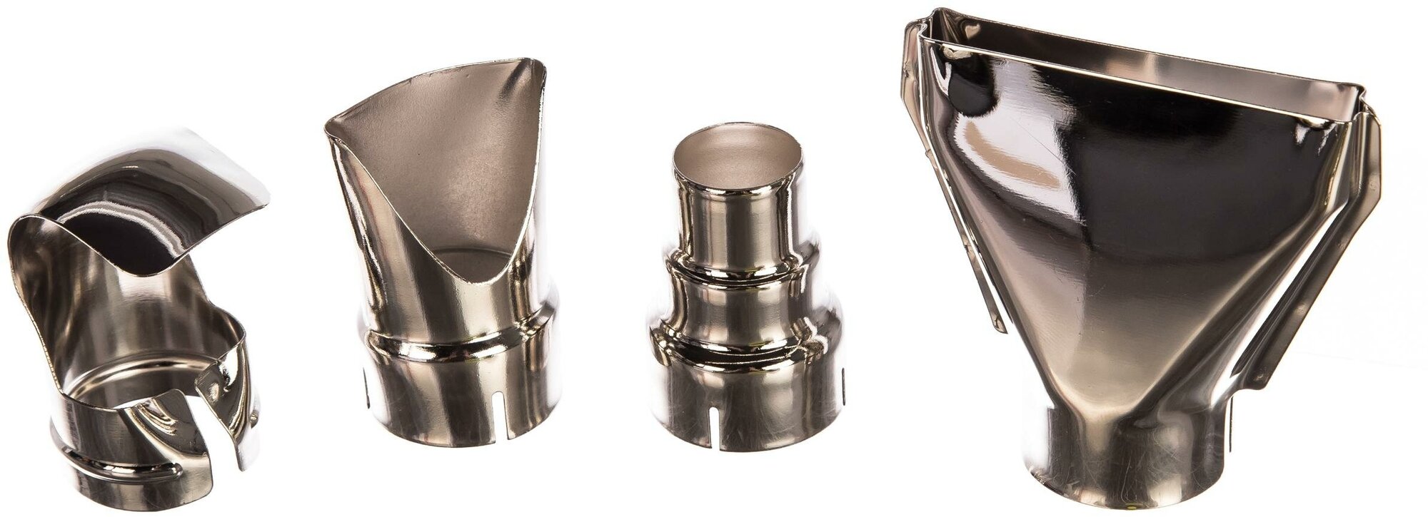 Двигатель мощностью 2000 Вт обеспечивает высокую производительность;Две ступени регулировки температуры;Малый вес снижает энергоемкость работы;Четыре насадки в комплекте позволяют оснастить инструмент под конкретные рабочие нужды;Возможность вертикальной установки