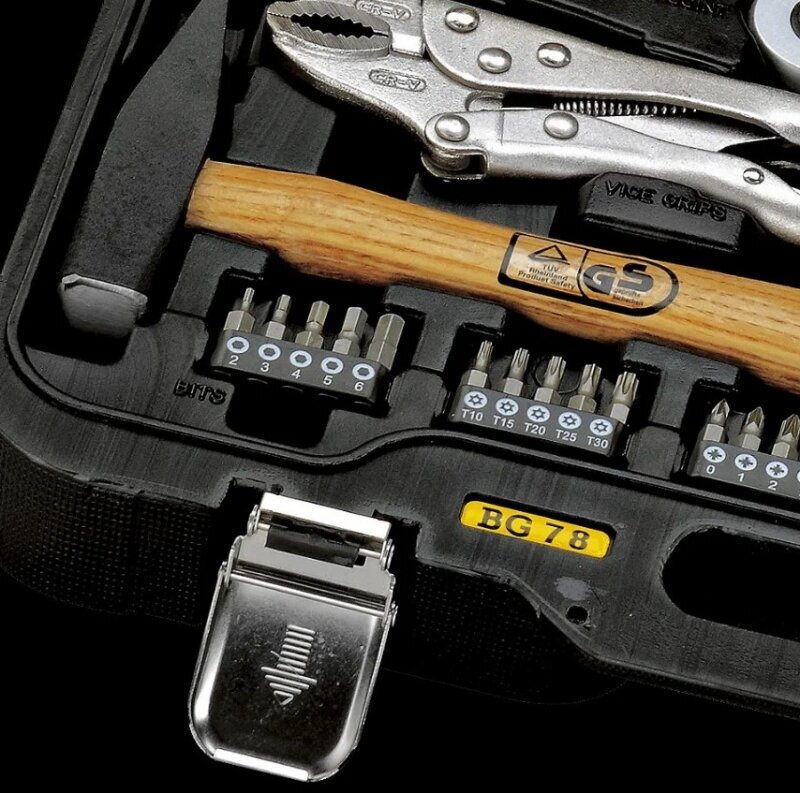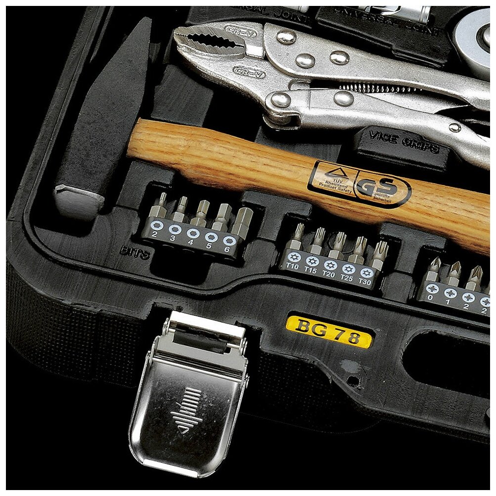 Универсальный набор инструментов 78 предметов Berger BG поможет выполнить множество ремонтных и монтажных работ. Все изделия изготовлены из высокопрочной хромованадиевой стали. Инструменты проходят двойной контроль коррозионной устойчивости. Для удобной работы некоторые предметы оснащены эргономичными рукоятками, которые не скользят и удобно фиксируются в руке, что создает комфорт в работе. Набор поставляется в кейсе, для удобного хранения и транспортировки.