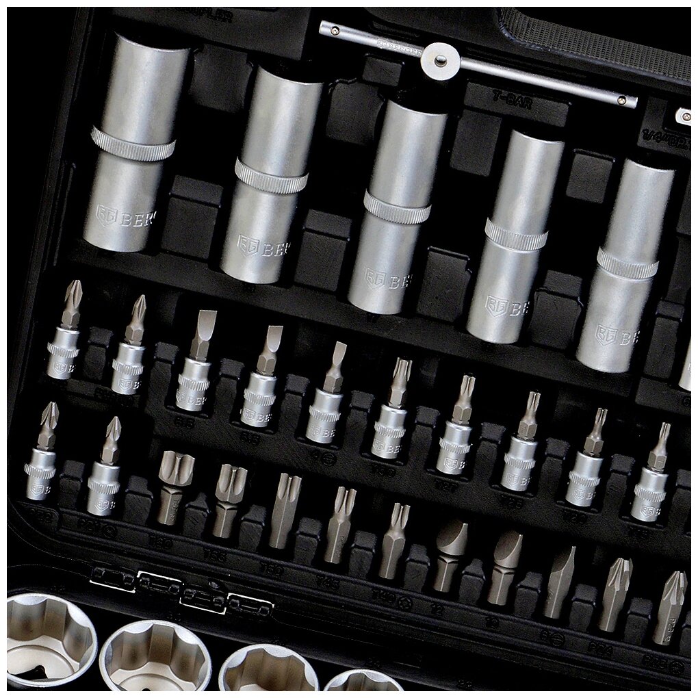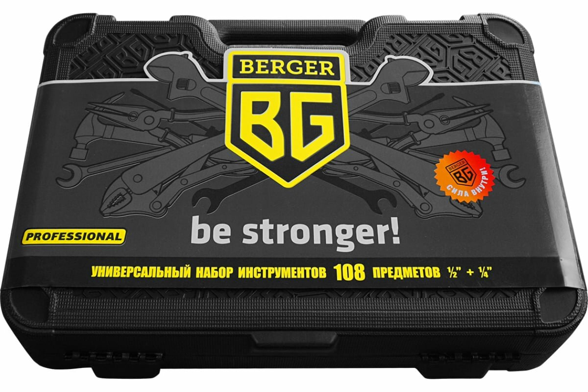 Универсальный набор инструментов Berger BG состоит из 108 предметов, которые выполнены из качественной хромованадиевой стали и защищены от образования коррозии. Благодаря уникальной технологии закаливания и гальванизации инструменты обладают высокой прочностью и износостойкостью. Набор поставляется в прочном кейсе, где каждый инструмент занимает фиксированное место и легко извлекается.