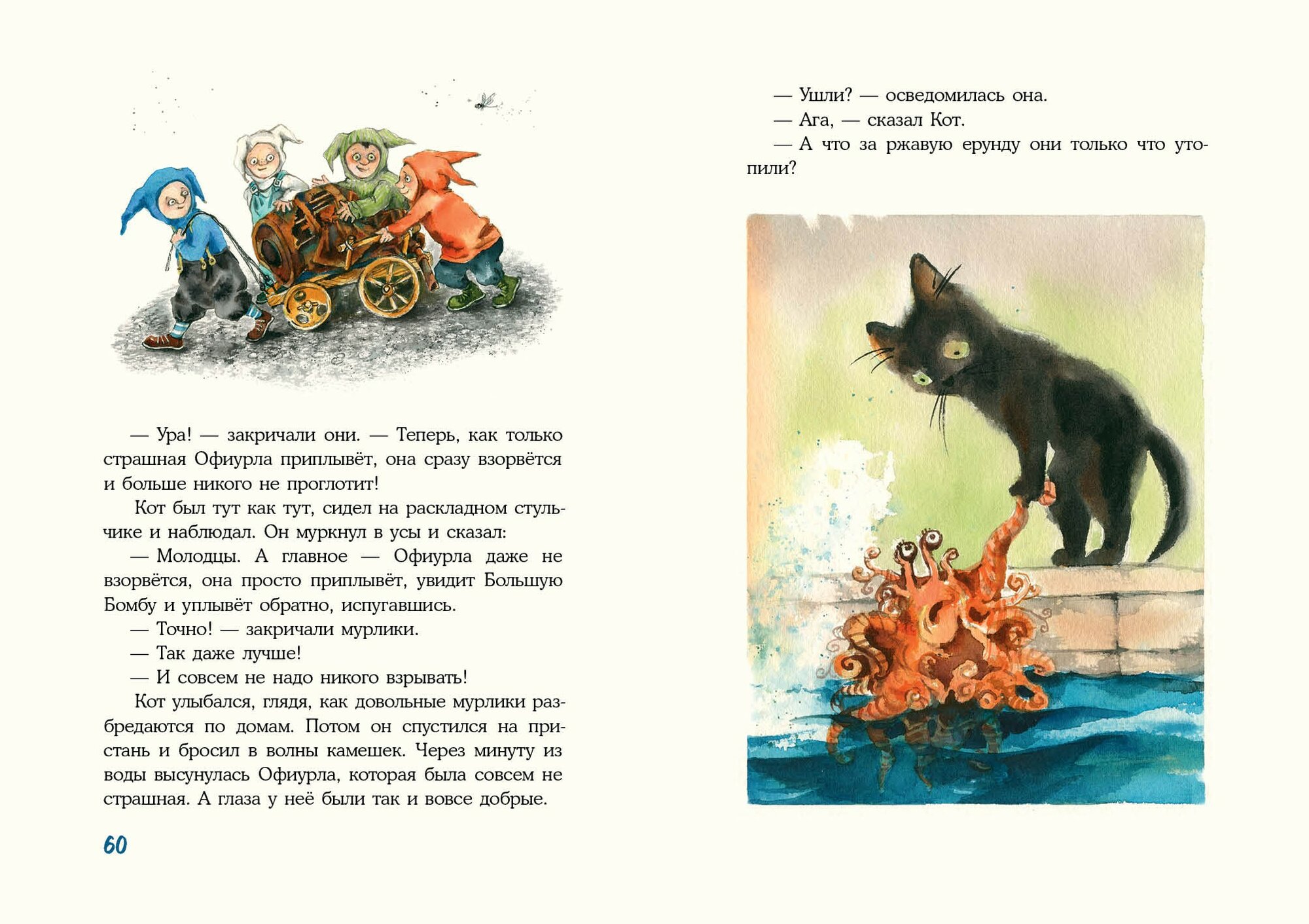 Читать эту книжку необходимо, потому что в фонтане здесь плавают несъедобные рыбки, в гости приходит необычная Мышь, вокруг есть море, а в море живёт страшная, жуткая Офиурла, мурлик – добрый и милый, а Кот умеет мурчать! И читать обо всем этом безумно интересно! И главное – в конце все обязательно будет хорошо!