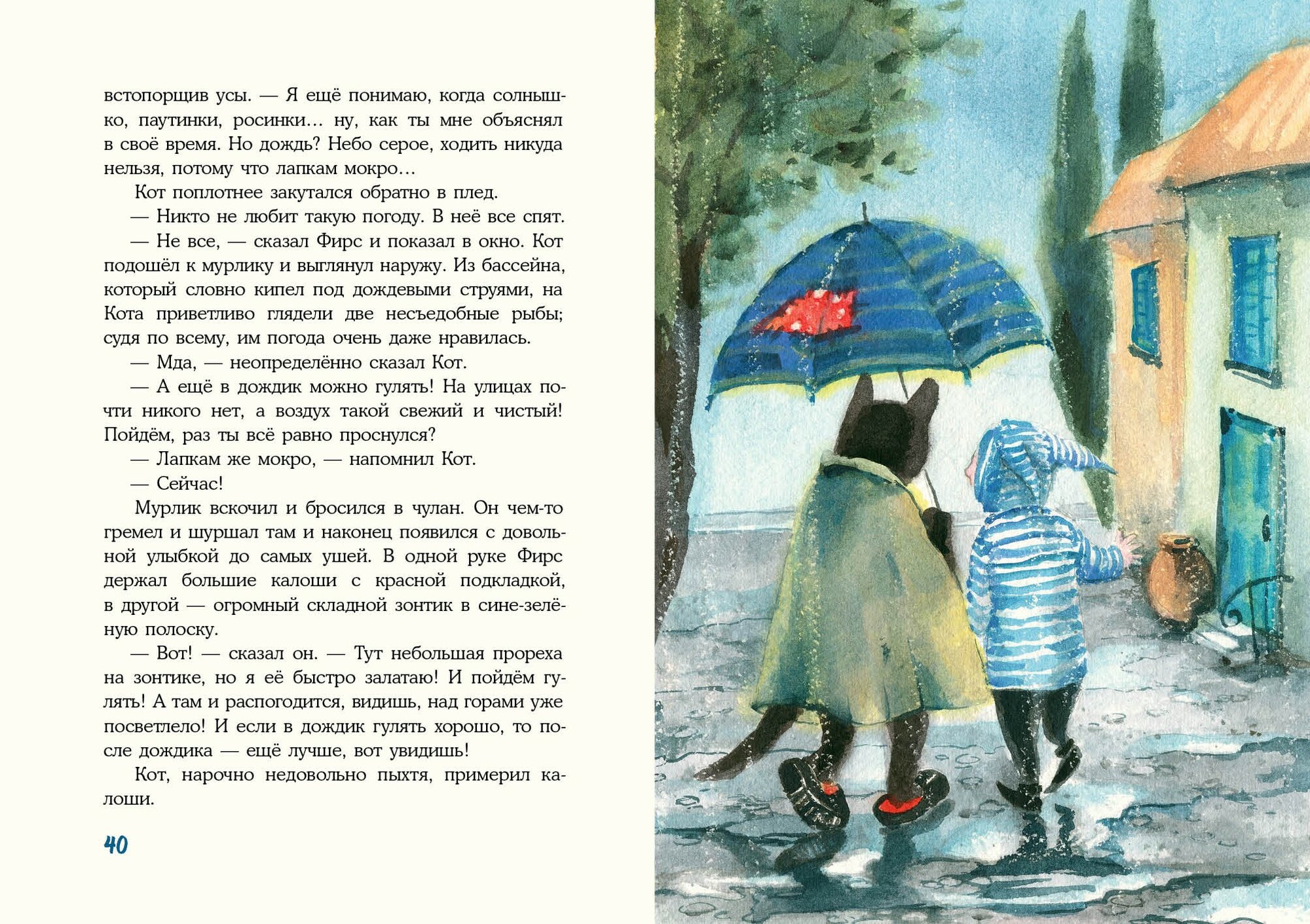Мурлик Фирс очень хотел найти своего кота, чтобы заботиться о нем, ведь мурлики - такие милые и добрые существа! Наконец, после долгих поисков, ему повезло - да вот только кот его оказался мрачным и неприветливым? Но со временем Фирс понял, что первое впечатление обманчиво, и их с Котом знакомство переросло в крепкую дружбу. Ведь на самом деле Кот чувствовал себя одиноким и ему очень нужен был кто-то, с кем можно вместе гулять под дождем, смотреть на море, шутить, улыбаться и просто мечтать? Яркие, забавные и трогательные иллюстрации к книге нарисовала замечательная художница Татьяна Глущенко. Для младшего школьного возраста.