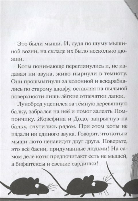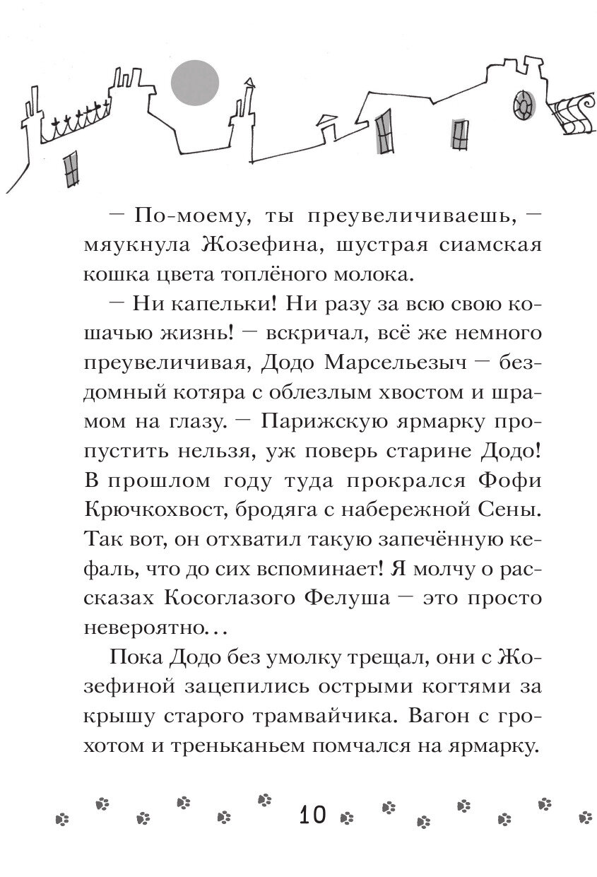 Читала в самолете и даже не заметила, как прошел полет :-) Да, это детский детектив и хотя предмет поисков не отличается изяществом – колбаски с кориандром, но какой слог! Немного похоже на «Зверский детектив», но я бы сказала, что здесь стиль повествования помягче, без совсем уж грубоватых словечек и специфического чувства юмора. И герои симпатичнее. Например, тот же Додо Марсельезыч – даром что уличный кот :-) А вот диалогами между героями, пожалуй, напоминает «Кошачью санаторию» Саши Чёрного.