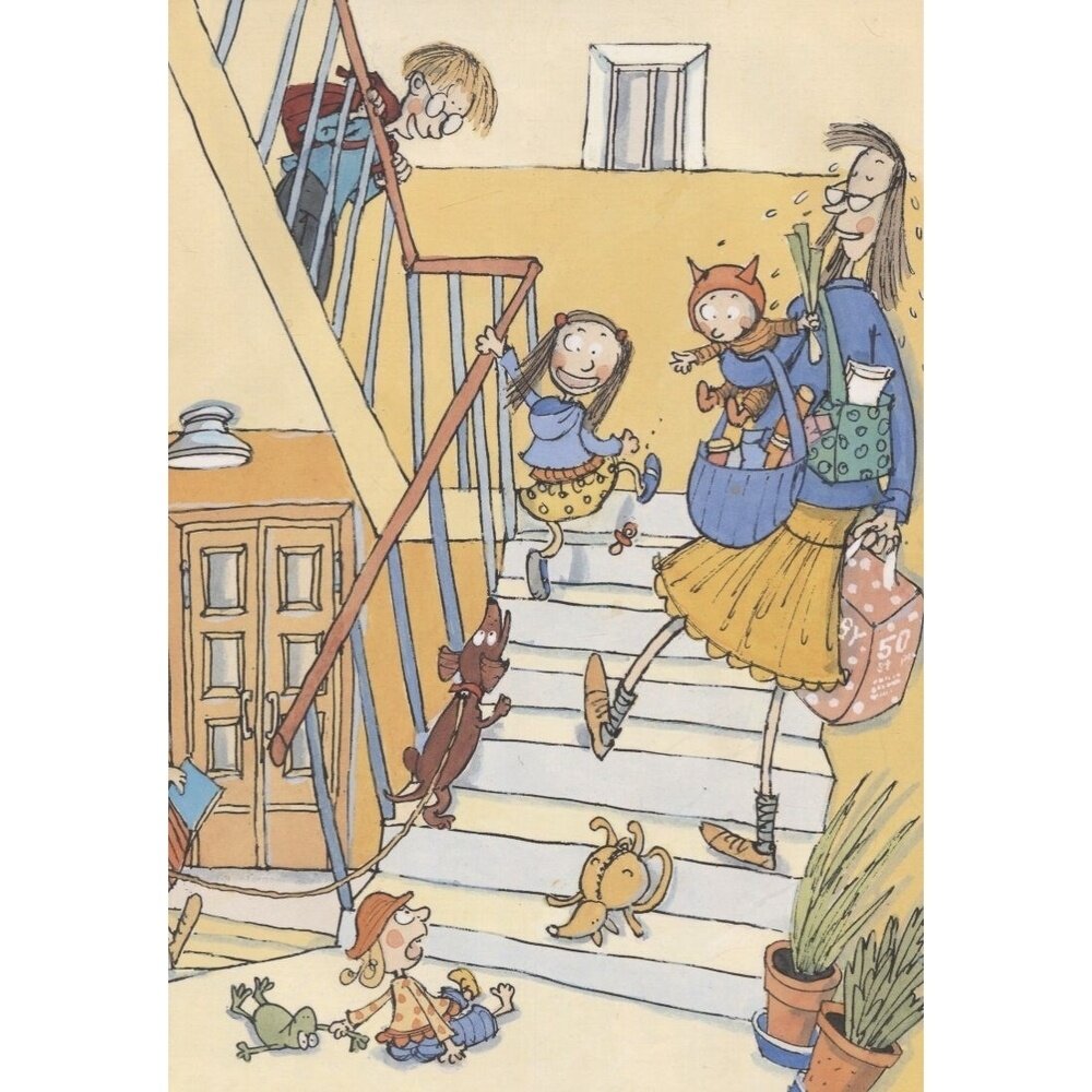 Первые две книги очень понравились моим детям 4 и 5 лет. Как только увидели продолжение, сразу купили. Очень хорошие иллюстрации, которые отображают реалистичную картину жизни многодетной семьи. Эти развороты словно терапия для мамы маленьких детей: вот малышка играет мячей собаки, вон полное ведро мусора, вон еда под столом. Все это ярко, забавно и по-настоящему. Текст, как и в первых двух книгах - емкий и содержательный. О том, что мечты сбываются, но не всегда так, как задумывалось. Громадная философия в фразе о том, что лучше иметь и потерять, чем никогда не любить. Если в первых книгах рассматривалась проблема конфликтов и ночных кошмаров, то в этой автор шагнула ещё дальше. Очень доступно, на простом примере, она показывает детям, как пережить потерю и смериться с неизбежным. Все по доброму и с юмором. Книга не посредственность, я думаю, такие вещи - это новая детская классика.