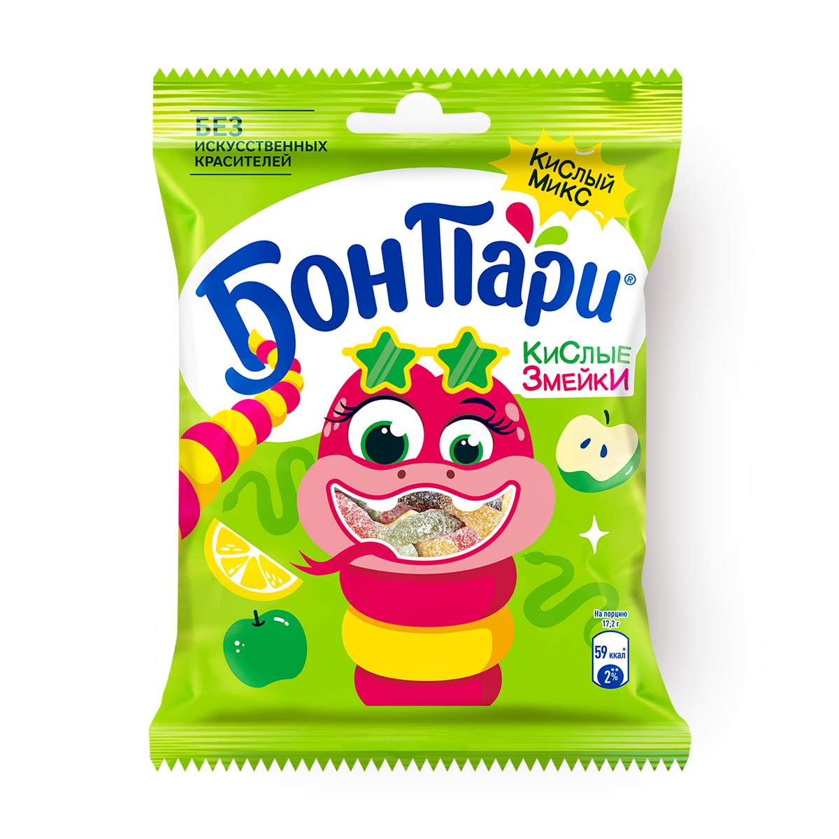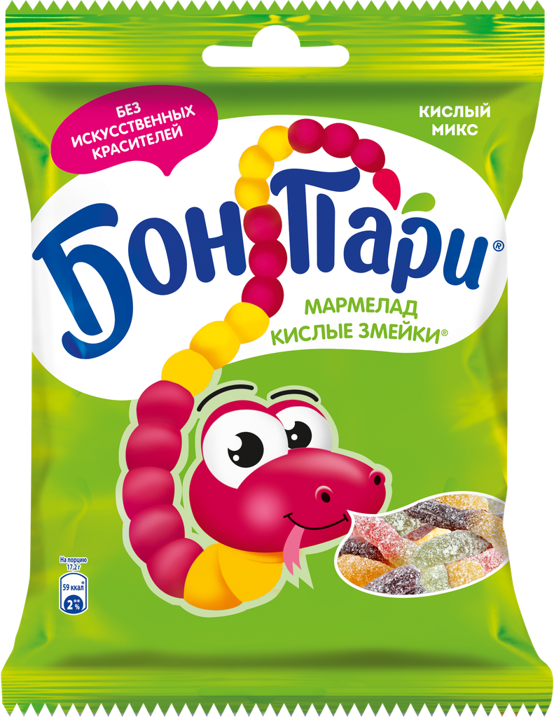 Мармелад Бон Пари жевательный Кислые Змейки со вкусом фруктов 120г Nestle