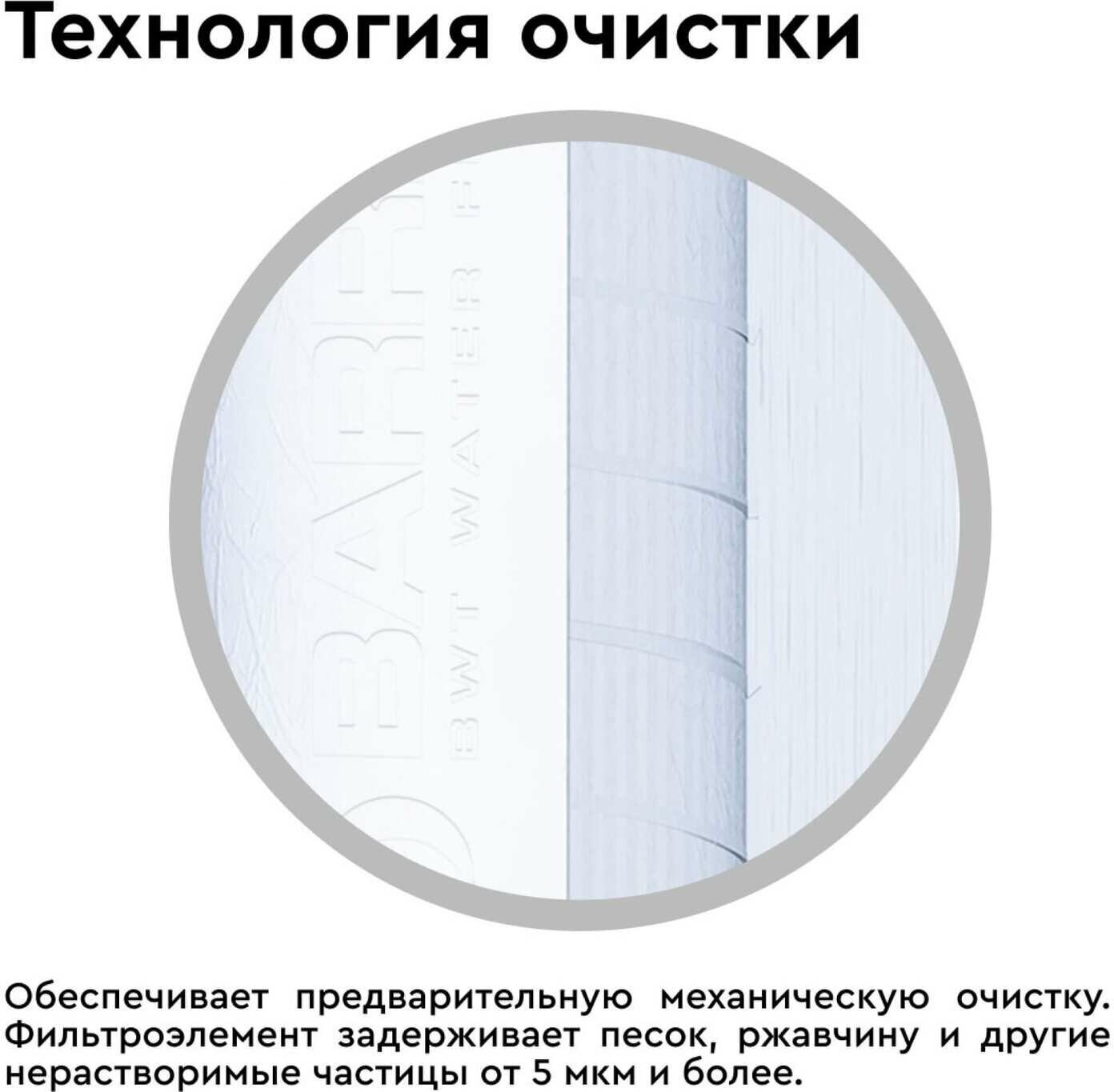 Высококачественный полипропиленовый фильтроэлемент БАРЬЕР "" предназначен для предварительной очистки воды от механических загрязнений в составе водоочистителя Барьер "Профи" и других проточных фильтров. Он устанавливается в первую ступень проточного фильтра. Фильтроэлемент показывает высокую эффективность очистки от нерастворимых механических примесей