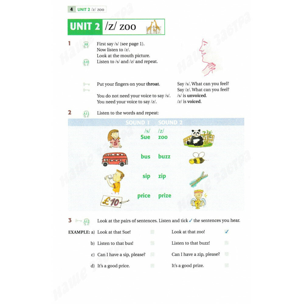 - Each unit offers comprehensive practice of sounds, with additional work on stress and intonation.