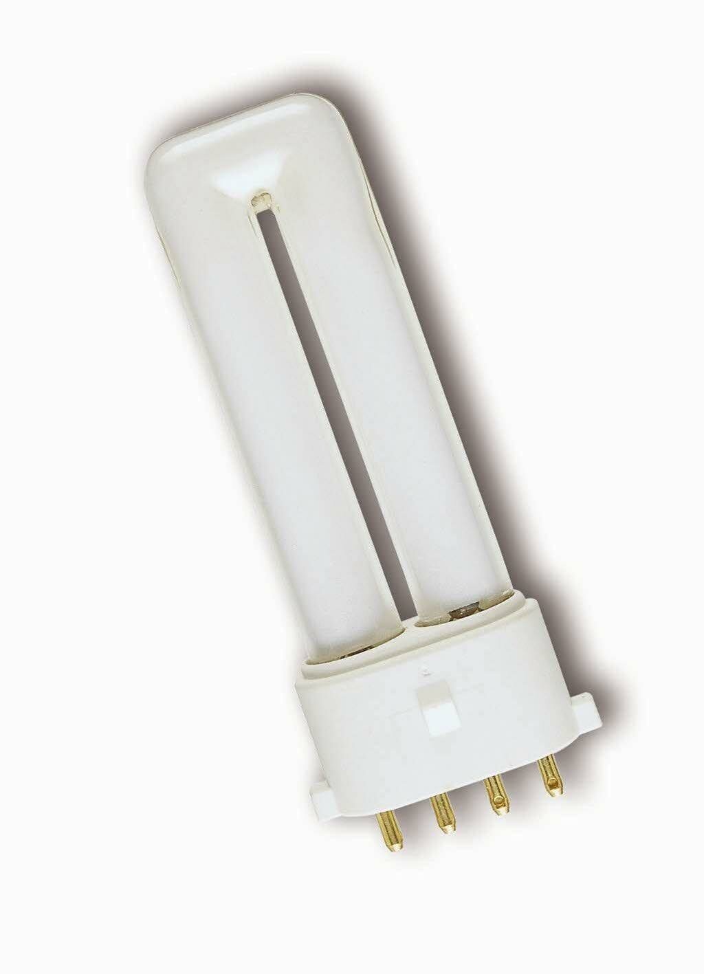 Компактная люминесцентная лампа OSRAM DULUX S/E для электронных ПРА (ЭПРА). Лампы могут работать от батарей, солнечных генераторов или от сети. Могут работать при низком и высоком напряжении. Срок службы в 10 раз больше, чем лампы накаливания аналогичной яркости.
