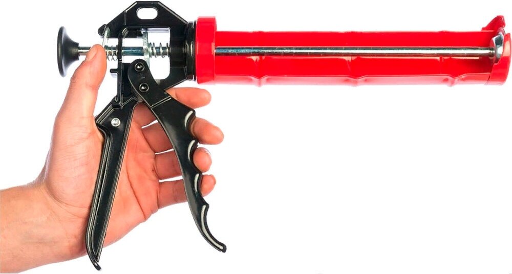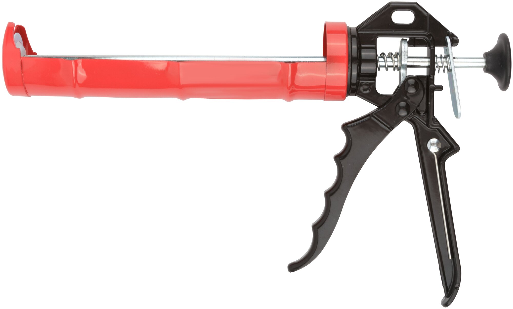 Профи. Полуоткрытый. Для выдавливания герметика из стандартной ёмкости 310 мл. Шток круглый. Материал: инструментальная сталь, алюминий. 225 мм.