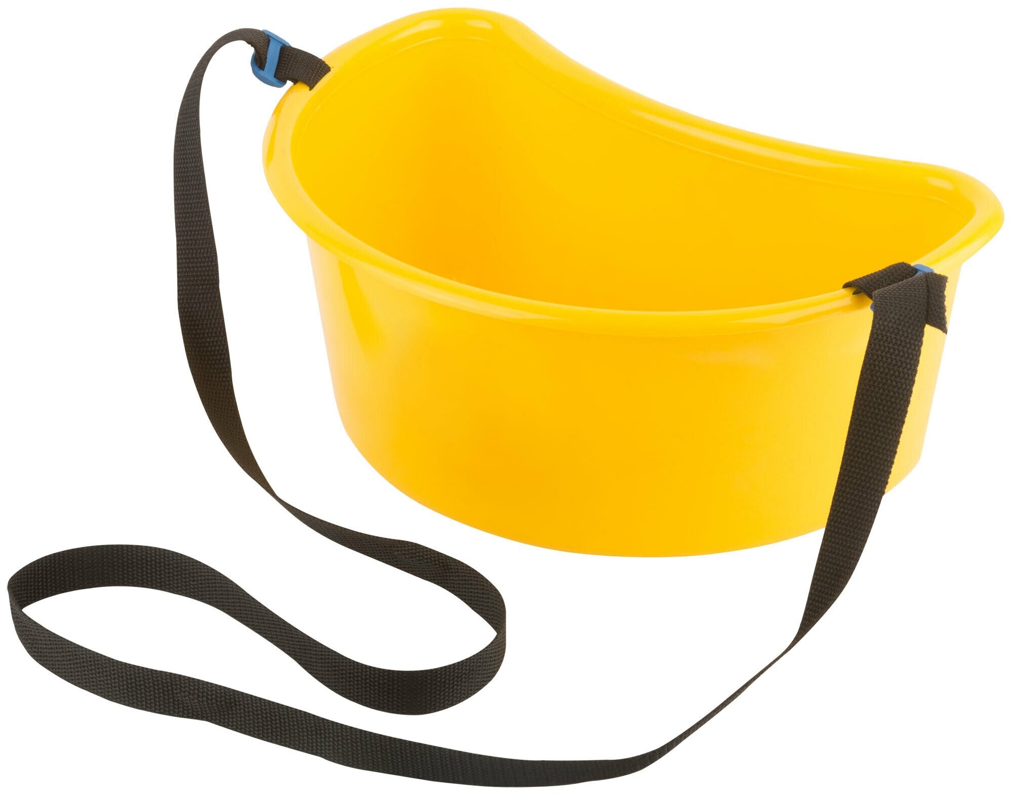 Специальная форма и наличие ремня обеспечивают удобное расположение ведра на теле человека во время работ и позволяет использовать обе руки при сборе урожая с деревьев и кустарников. Материал: пластик.