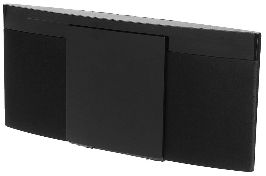 Компактная система с возможность прослушивания CD, USB, в том числе Mp3, можно подключить смарт через Bluetooth. Расположена на столе вертикально, можно повесить на стену. CD на передней панели по центу, прячется за сдвижной крышкой, USB и все кнопки сверху. Звук ожидаемо примитивный плоский, для кухни в качестве фона или детских песенок подойдет, глубины и сочности ждать не стоит. Динамики закрыты тканью - не очень аккуратно. При включении приветствует, при выключении прощается, но несколько медлительно. Ребёнка устраивает, пока не меломан ...