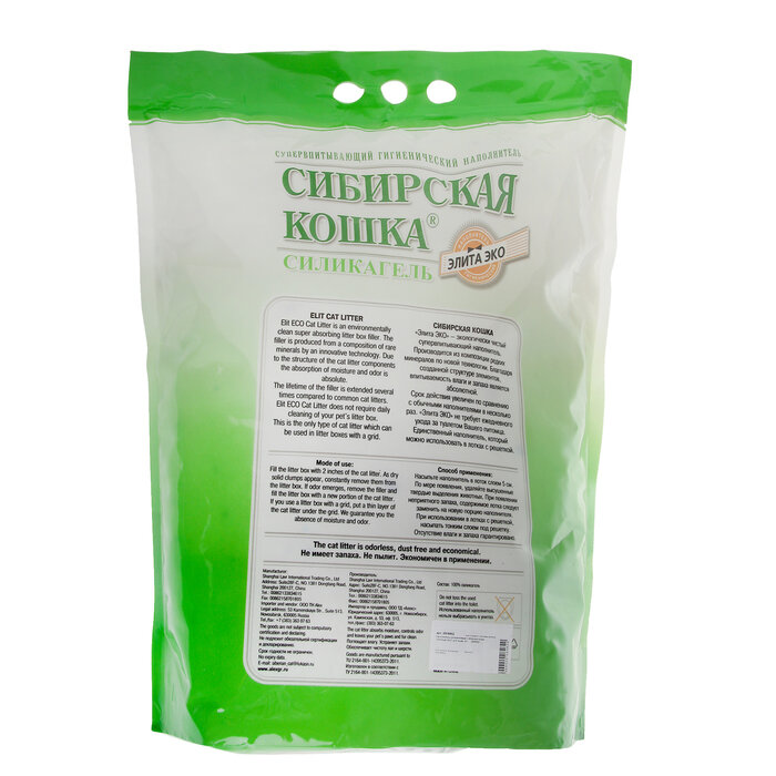 Наполнитель Сибирская Кошка Элитный ЭКО зеленый впитывающий силикагель без запаха 72кг 16 л