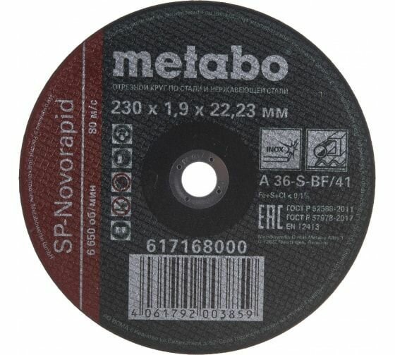 Модель: Диск отрезной Metabo по нержавеющей стали 230x1,9x22 мм