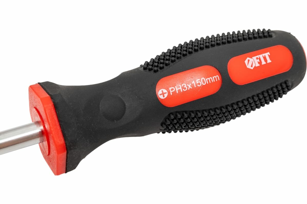 Крестовая отвертка FIT для откручивания или закручивания крепежных элементов. Рабочая часть из качественной хромованадиевой стали имеет намагниченный наконечник. Двухкомпонентная рукоятка эргономичной формы исключает проскальзывание и обеспечивает удобство при продолжительной работе.