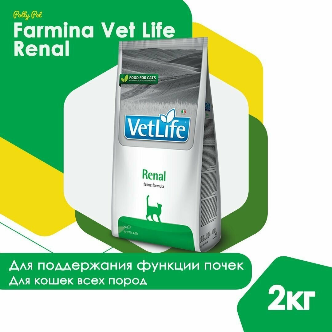 Почечная недостаточность/ вспомогательное средство в терапии застойной сердечной недостаточности.Farmina Vet Life Renal – диетический сухой корм для кошек, разработанный для поддержания функции почек при почечной недостаточности. Диета содержит низкое количество фосфора и ограниченное количество белка.Механизм действия:Низкое содержание белка и фосфора снижают симптомы почечной недостаточности высокого качества и улучшают состояние животного.Рекомендации по кормлению:Использовать по назначению ветеринарного врача. Рекомендованные курсы лечения: 6 месяцев (2-4 недели в случаях временной почечной недостаточности). Рекомендуемая дневная норма кормления указана в таблице и имеет ориентировочный характер, необходимо точно установить вес кошки. Дневная норма может быть разделена на два и более кормлений. Кошка должна иметь свободный доступ к свежей питьевой воде.Сниженное содержание белка. Низкое содержание белка способствует снижению метаболизма азота и тормозит развитие гипертензии.Низкий уровень натрия и фосфора. Контроль гипернатриемии и гиперфосфатемии, что способствует замедлению прогрессирования почечной недостаточности.L-карнитин. L-Карнитин повышает толерантность к физической нагрузке.Омега-3. Полиненасыщенные жирные кислоты Омега-3 способствуют улучшению гломерулярной фильтрации.Высококачественные белки. Белки высокой биологической ценности профилактируют потерю мышечной массы.Все продукты Farmina разработаны специалистами и протестированы на собаках и кошках в домашних условиях содержания.