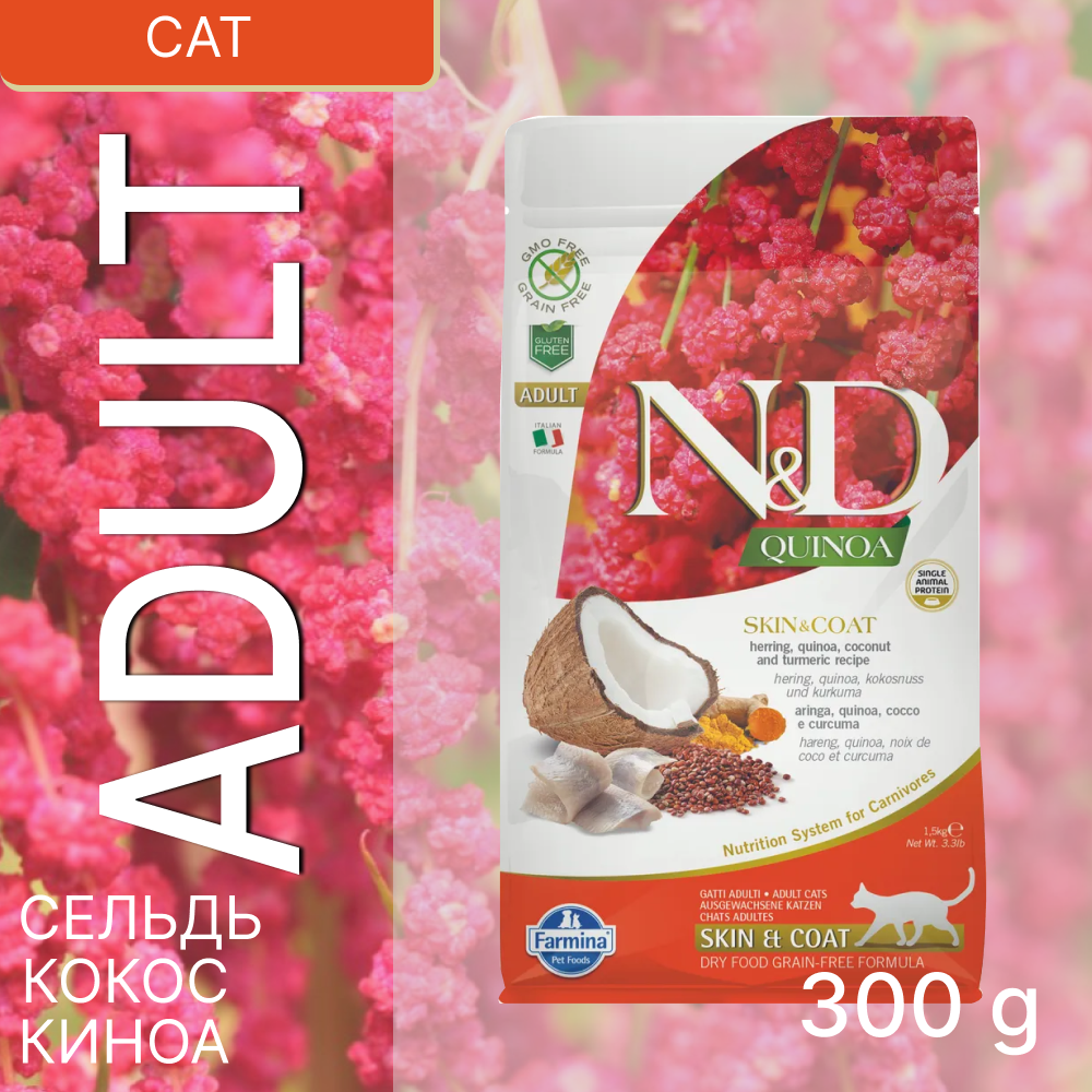 Farmina N&D Cat беззерновой сельдь и киноа для здоровья кожи и шерсти 15 кг (3034)