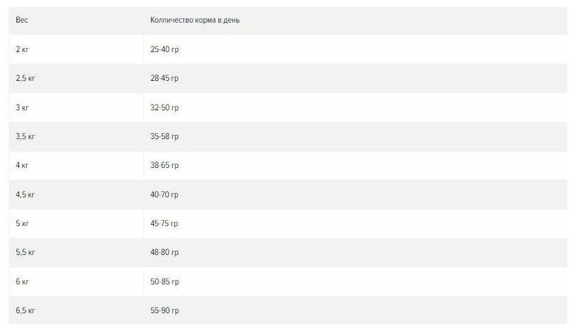 | Возраст животного | Взрослые (1 - 7 лет) |