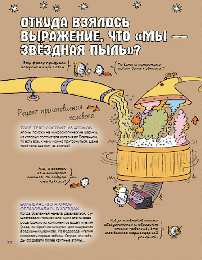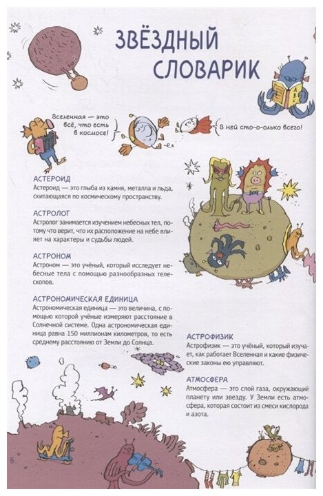 В книге также есть карта звездного неба, космический словарик и заметки об известных астрономах. Также забавно читать ответы на вопросы типа "чем отличается астроном от астролога?" или "почему мы - звездная пыль") -