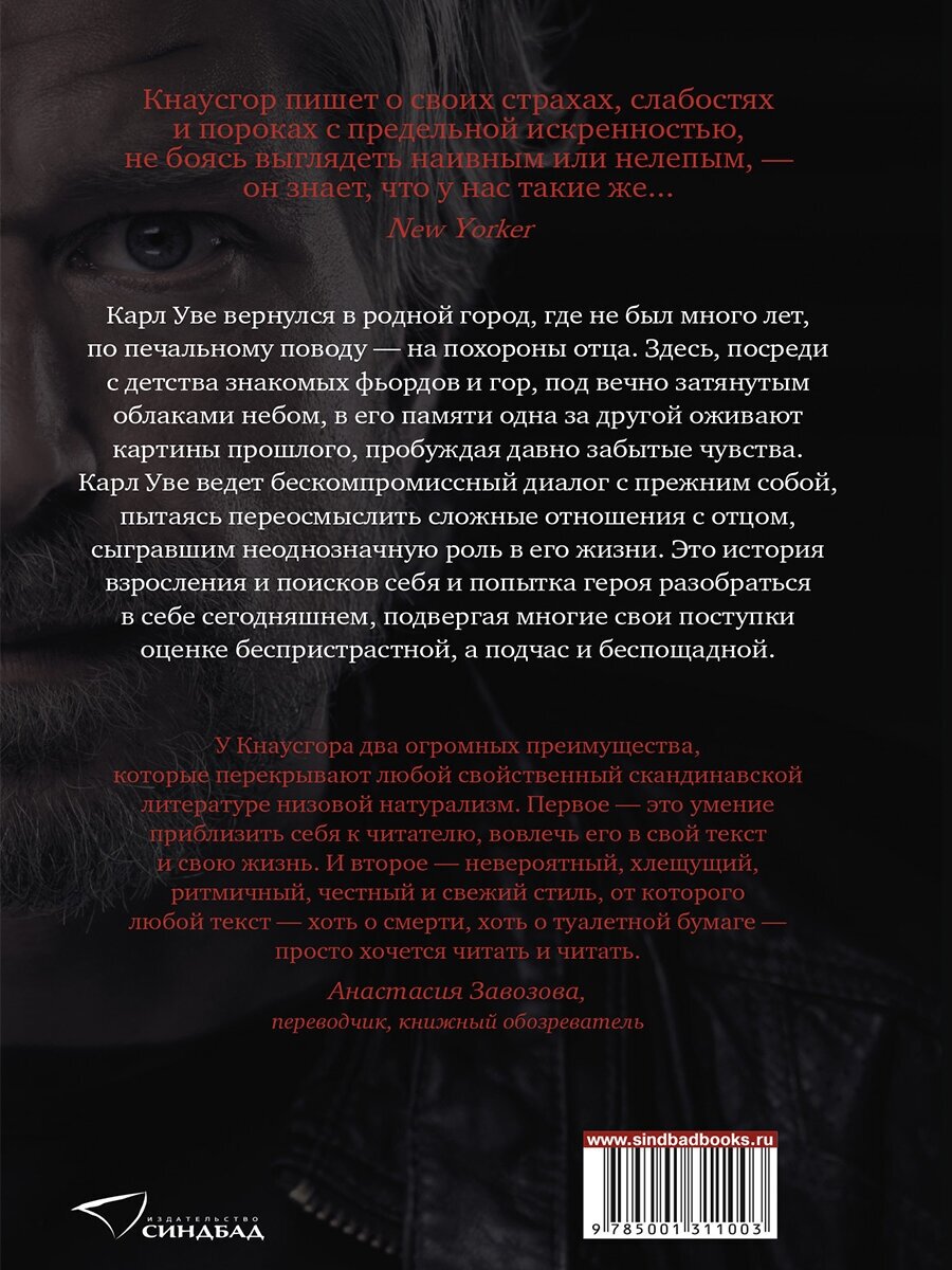 Автор представил перед нами свою жизнь, честно и без прикрас. Он припомнил свои юношеские чувствования, переживания по делу и просто по смутному ощущению, например, надвигающегося семейного разлада, свою реакцию страха на недостаток внимания со стороны отца, вызывающие выходки как ответ на неумное поведение учителя и его профессиональную бездарность. Начало курения- только чтобы не быть одиноким, а иметь возможность постоять в стайке ребят. Многое. Вы спросите- ну и что, бывали и раньше такие книги. В этой привлекает невыдуманность ситуаций, происшедших с подростком, и их бескомпромиссное толкование им же, но уже взрослым сегодняшним человеком. Читатель максимально приближён к хрупкому миру паренька, жителя небольшого норвежского городка, и да, узнает себя, неизбежно вспоминает свои чудачества, свои внутренние драмы. Параллельно возникает сегодняшний мир жизни автора- маленькие дети, неустроенный быт, неумение или невозможность правильно его выстроить. И, знаете, в этом повествовании совершенно нет ощущения погружения в нудную ежедневность, напротив, только острые переживания мальчишки и глубокие беспокойства взрослого, серьезного человека. Обстоятельства жизни меняются, даже уходят эпохи, а мысли и чувства всегда при нас, волнуют, будоражат, не отпускают.