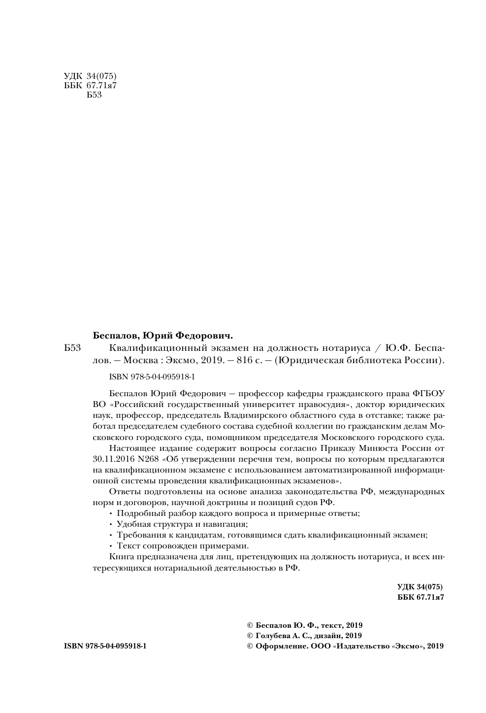 Квалификационный экзамен на должность нотариуса (Беспалов Юрий Федорович); ООО "Издательство "Эксмо", 2019
