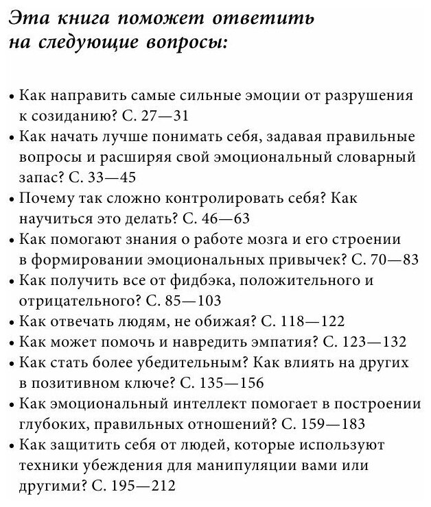 Эта книга – настоящий путеводитель по миру эмоций. Она не только поможет разобраться с собственными деструктивными состояниями и обрести самоконтроль, но и научит тонко чувствовать окружающих и выстраивать с ними глубокие, здоровые отношения. Это практическое руководство по EQ для всех, кто хочет, чтобы их эмоции помогали, а не разрушали. Пять причин прочитать эту книгу:• Эмоциональный интеллект – главный soft skill в современном мире.• 85% читателей поставили книге высшую оценку на Amazon. com.• Права на книгу уже проданы в 9 стран.• Соцсеть LinkedIn признала Джастина Барисо "главным голосом в сфере менеджмента и корпоративной культуры". • Книга содержит много практических рекомендаций и кейсов из реальной жизни.