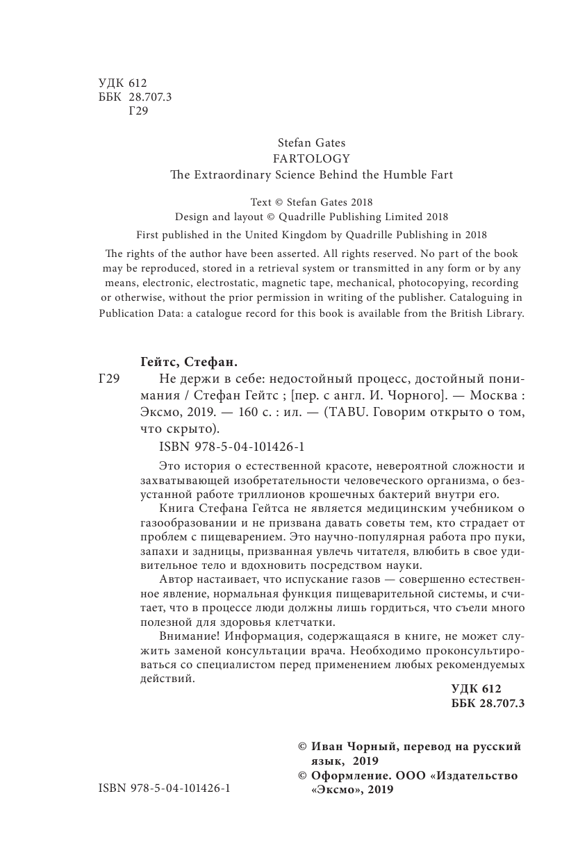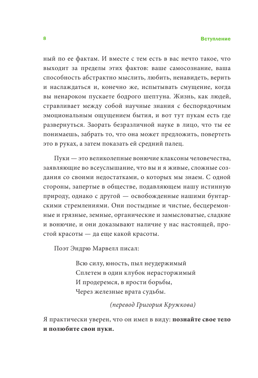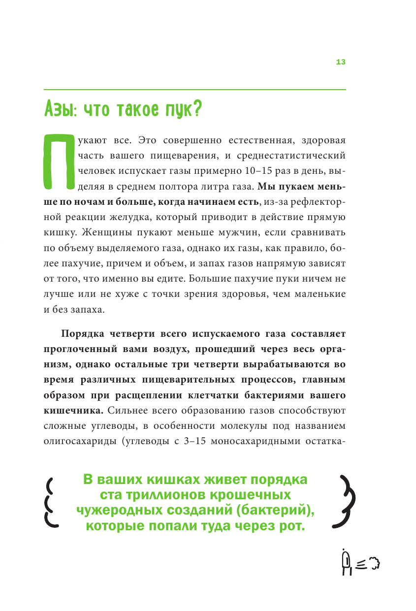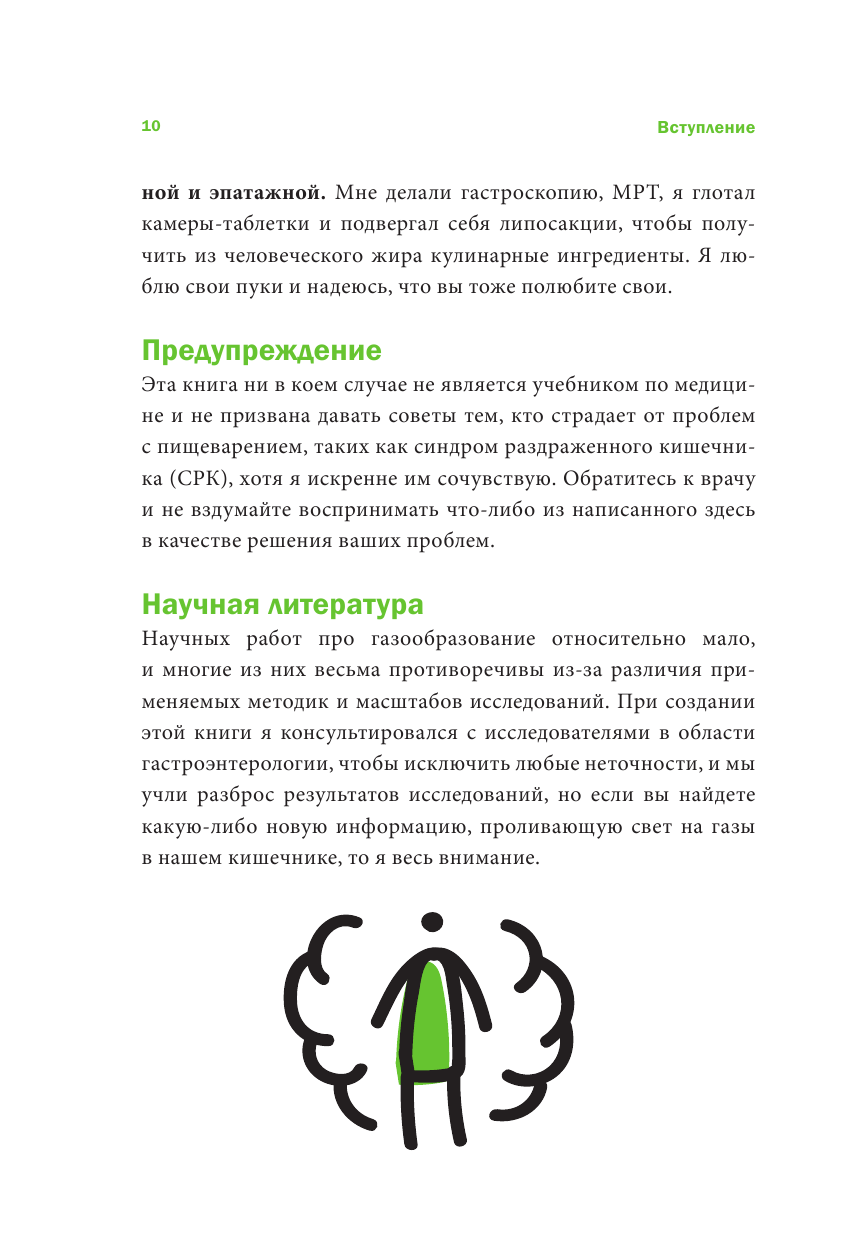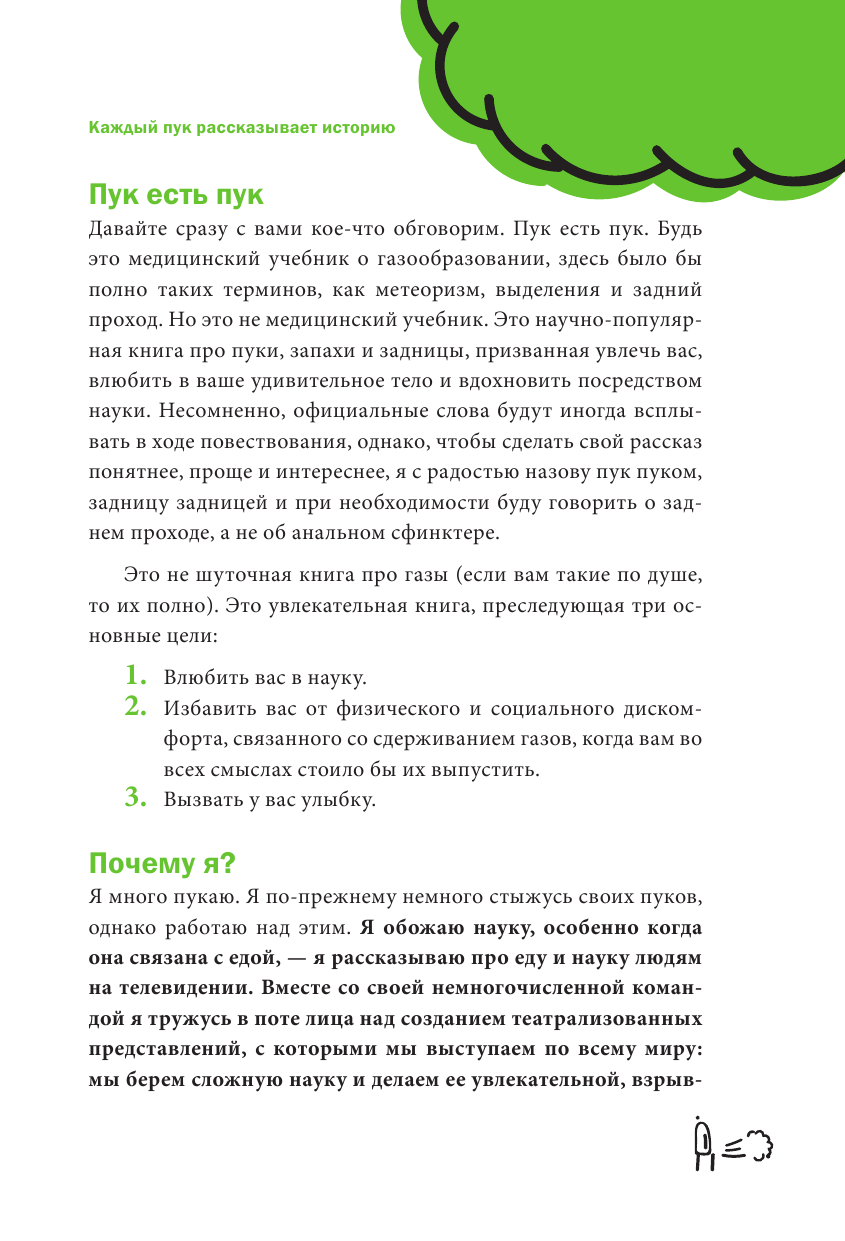 Книга Стефана Гейтса не является медицинским учебником о газообразовании и не призвана давать советы тем, кто страдает от проблем с пищеварением. Это научно-популярная работа про пуки, запахи и задницы, призванная увлечь читателя, влюбить в свое удивительное тело и вдохновить посредством науки.